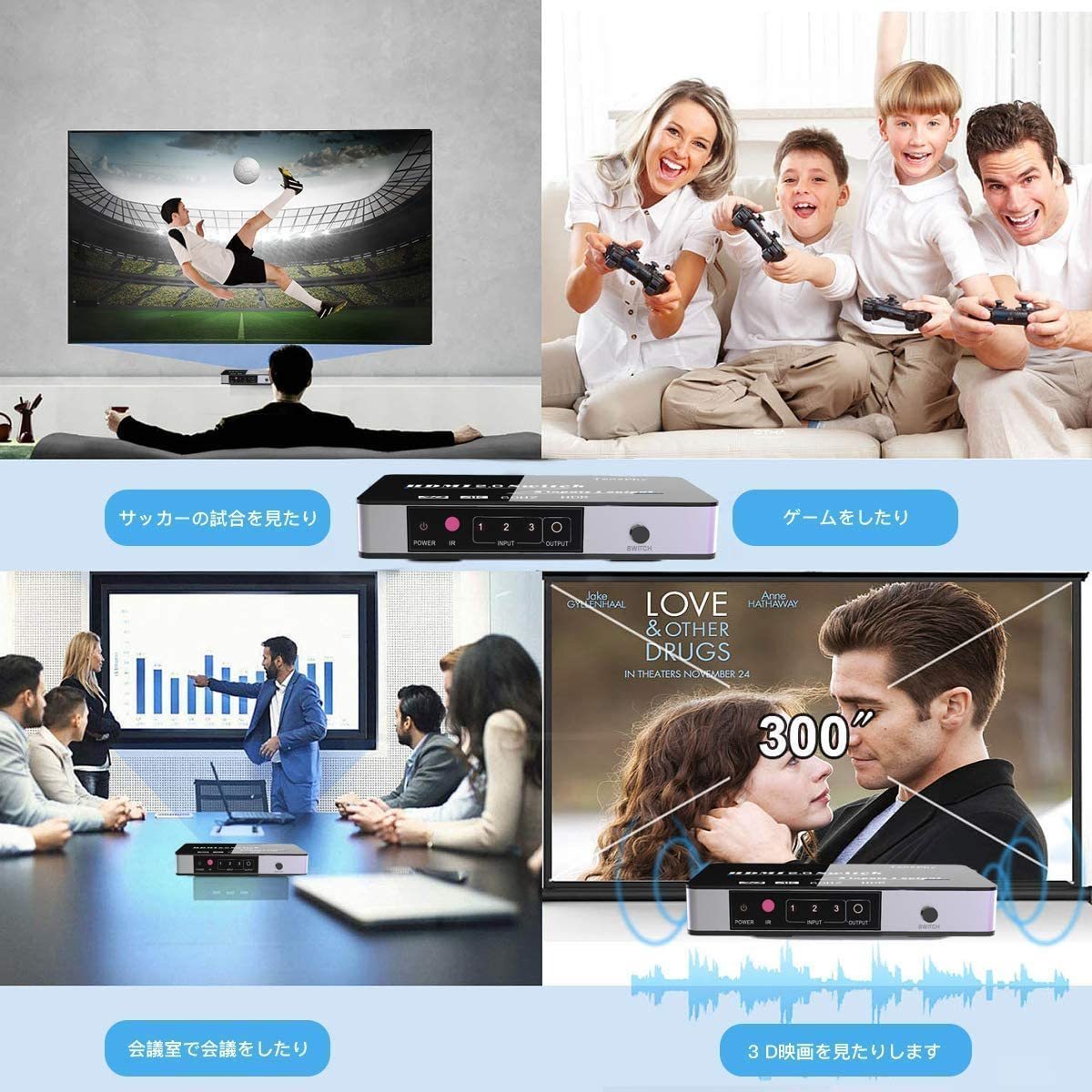 1台3役→3入力1出力→1つのHDMIスイッチで3つのデバイスに簡単に接続することができ、希望の画面を簡単に切り替えることができます。オーディオとビデオは、信号を失うことなく同時に送信されます。