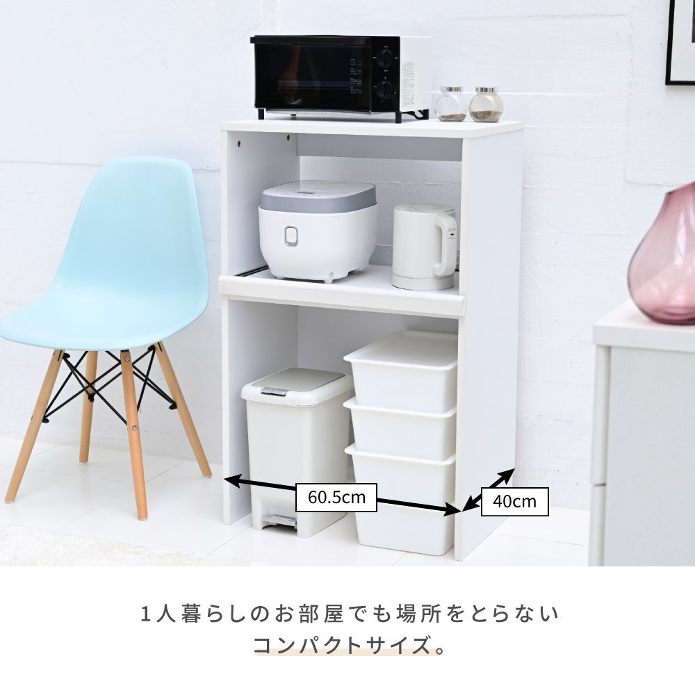 ゴミ箱の上のデッドスペースを有効活用できるキッチンラック"Mansarda"。 天板にはレンジを置くことができる他、コンセント付きのスライド棚は炊飯器やケトルなどの家電を収納するのにぴったり。 オープン部はゴミ箱だけでなく、小さめのラックなどの収納スペースとしてもおすすめです。 |