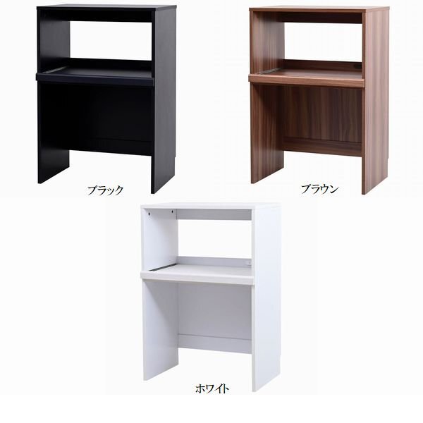 【カラー】 ブラック、ブラウン、ホワイト 【サイズ】 <外寸> 幅60.5×奥行40×高さ95cm <内寸> 天板:幅60.5×奥行38×高さ95cm スライド収納部:幅53.5×奥行35×高さ34.5cm スライド引き幅:35.5cm オープン部:幅56×奥行36×高さ54.5 【材質】 天板・スライド棚・スライド前板:合成樹脂化粧合板(PVC) その他:プリント紙化粧合板 【耐荷重】 天板:(約)20kg以下 スライド棚:(約)5kg以下 【生産国】 中国 【梱包】 サイズ:99×42×12cm、重量:13.8kg 【その他】 ・背面化粧あり ・合計1500Wの2口コンセント付き(コード長さ1.8m) 【組み立て品】 お客様による組み立てが必要です。 【ご注意】 ・サイズ、重量は概算です。 ・商品カラーはご使用のモニターによって実際の明るさや色と異なって見える場合がございます。 |