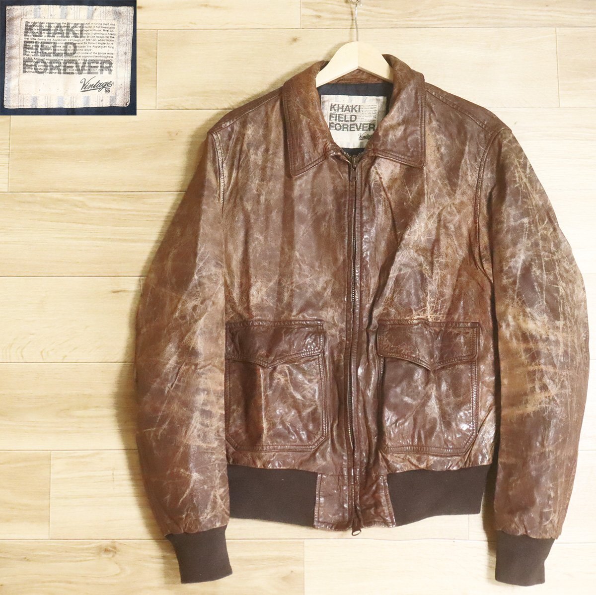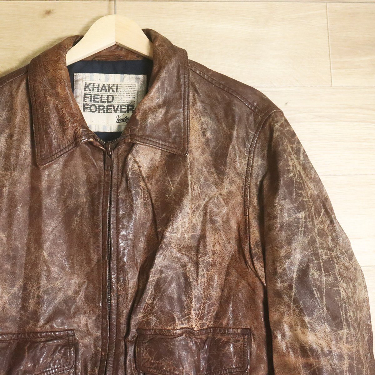 #1T/O8.29-1 KHAKI FIELD FOREVER レザーフライトジャケット 本革 L レザージャケット A-2 G-1 皮ジャン 革ジャン