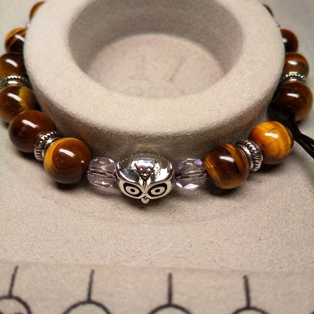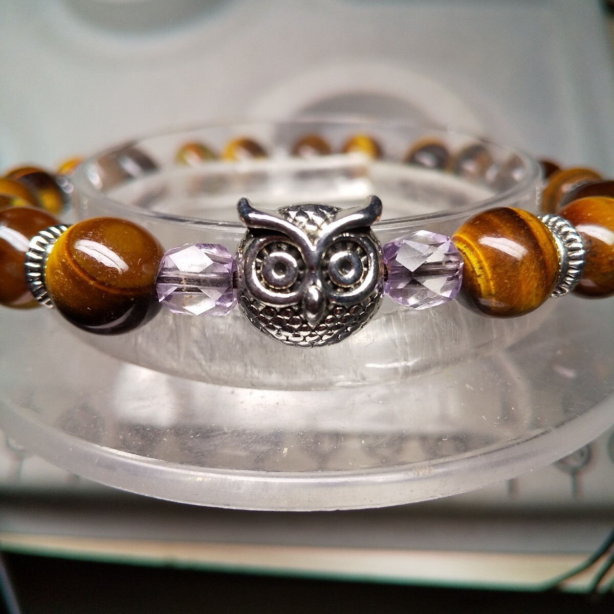 センターのふくろうのチャームは、非鉄合金に銀色メッキ。
