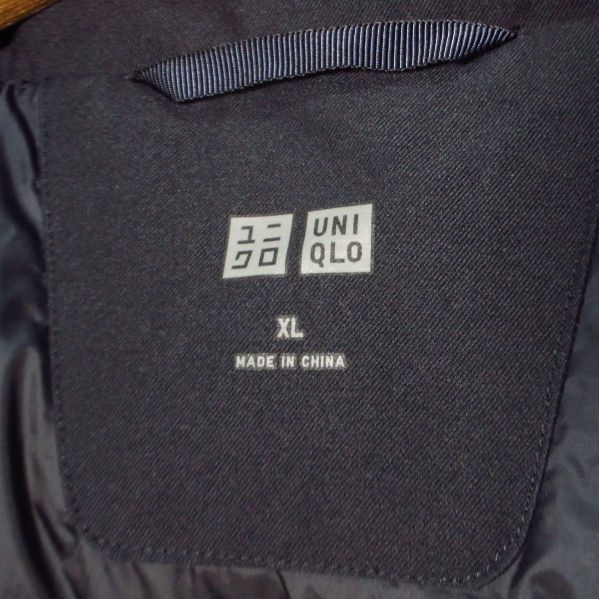 ◯使用少々!UNIQLO ユニクロ ハイブリッド ダウン コート ジャケット 防寒 あたたかい! メンズ 紺 ネイビー XLサイズ◆WA0306