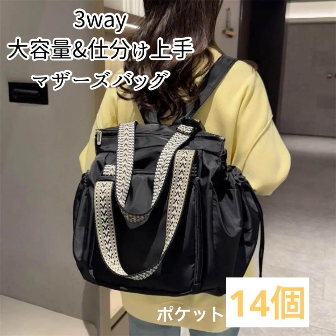 リュックとして背負えるだけでなく、ショルダーバッグや手提げとしても使える便利な3way仕様。マザーズバッグとしてはもちろん、普段の買い物バッグや旅行用にも活躍する大容量バッグです。