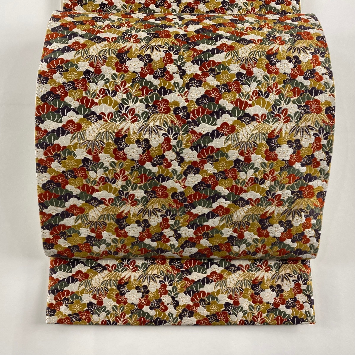 | 袋帯 秀品 鈴乃屋 松竹梅 桜 金糸 山吹茶色 六通 正絹 【中古】 |