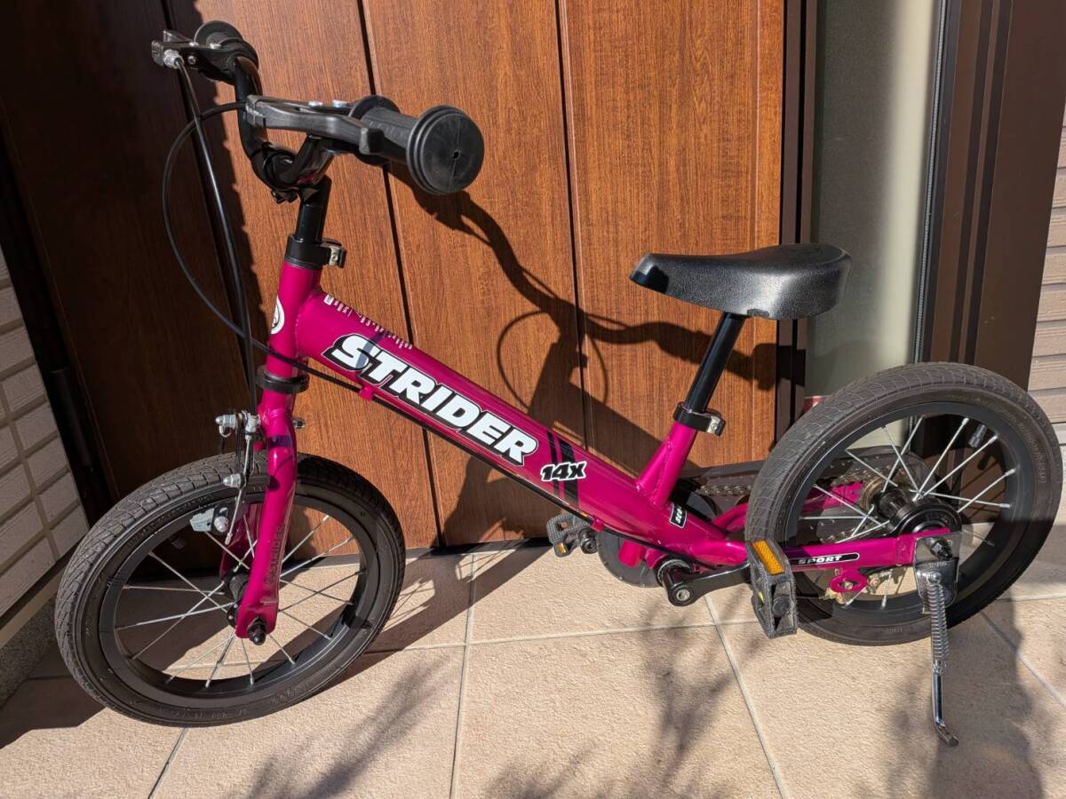 子どもさんが使用されていたそうですが、自転車へステップアップされたため、ストライダー卒業で、保管されていた車両です。