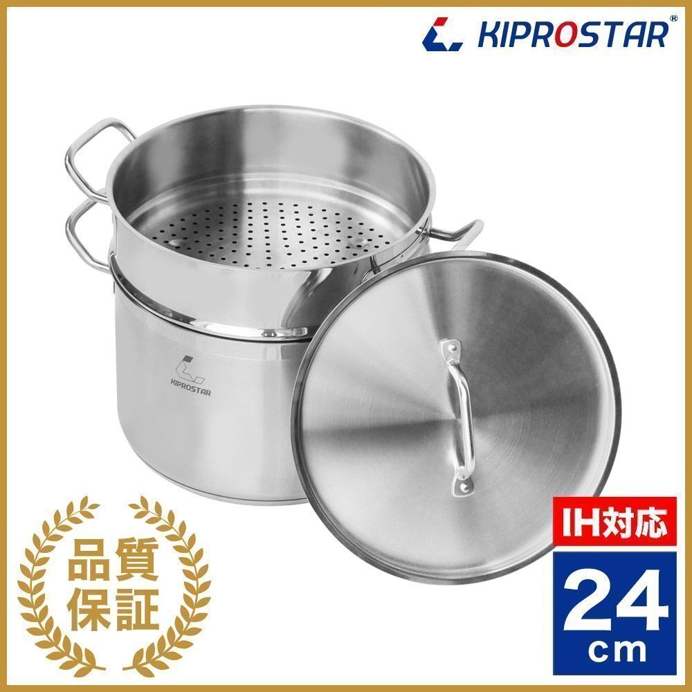 | 即納 IHステンレス半寸胴鍋 24cm 蒸し器セット 業務用 |