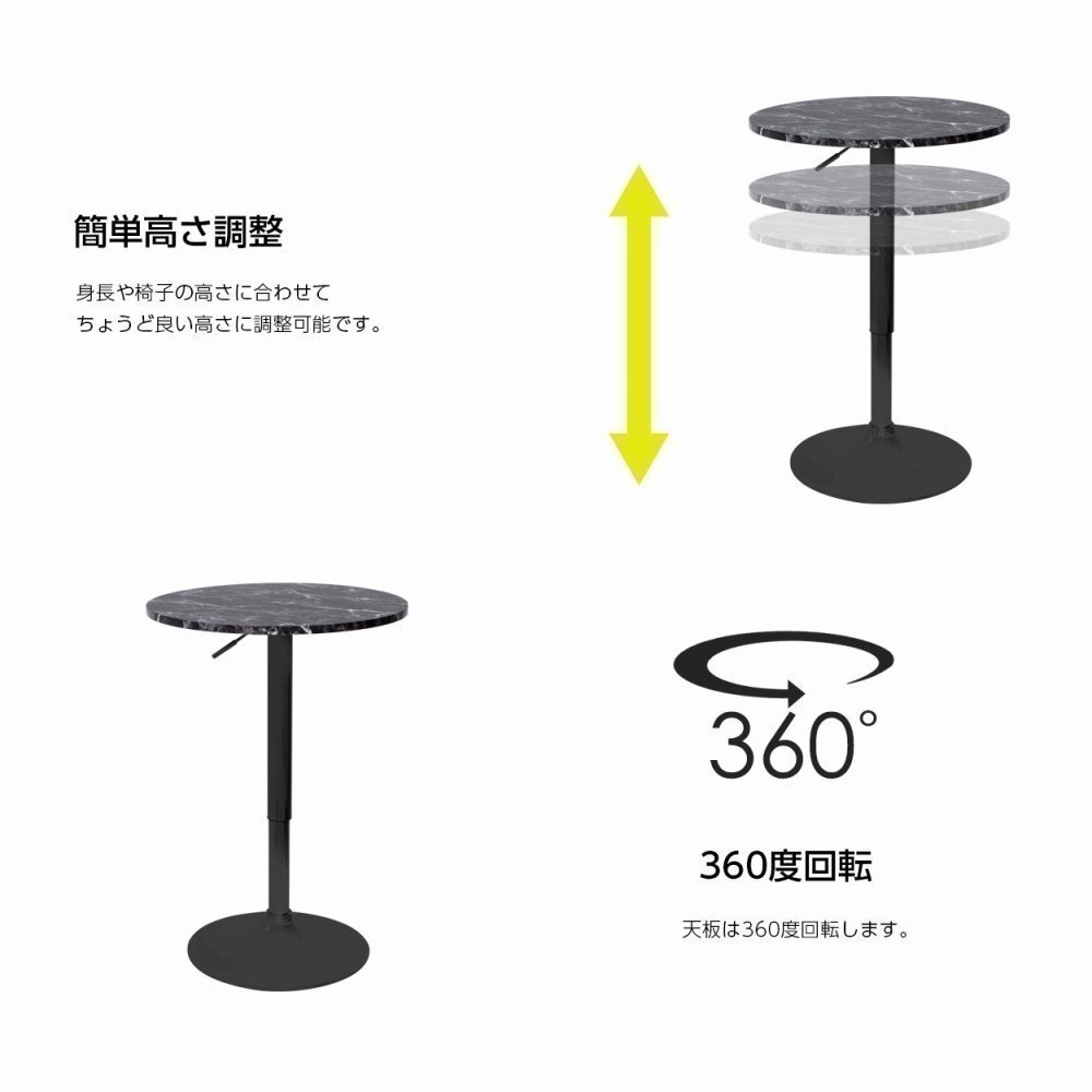 | カラー | ストーンライトグレー | 特長 | ・テーブルは360度回転します。 ※天板の固定は出来ません。 ・テーブル下のレバーで高さを調整できます。 ・バーやカフェのテーブル、休憩室や喫煙室のテーブルにも最適です。 ・昇降式なので座ってでも立ってでも利用できるテーブルです。 |