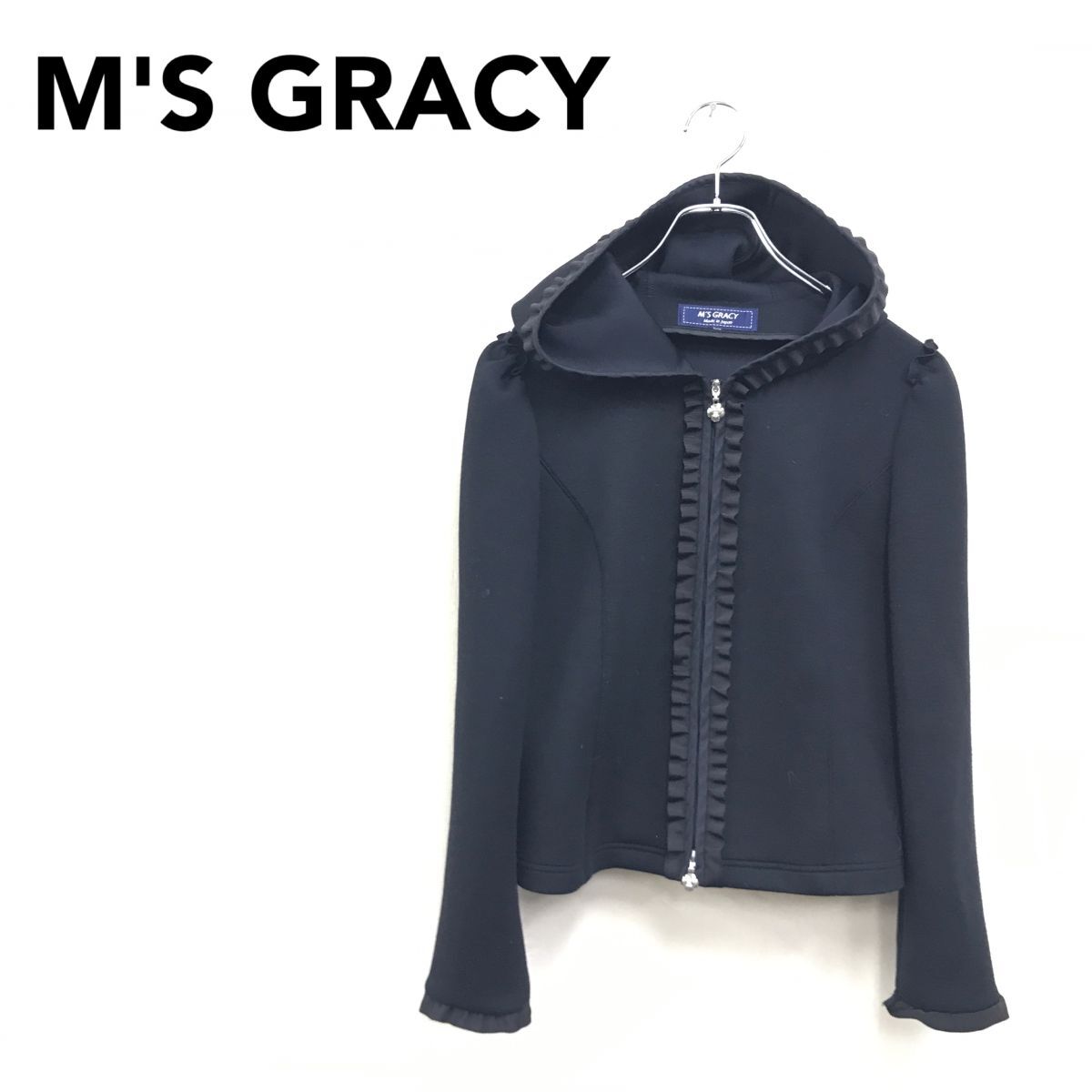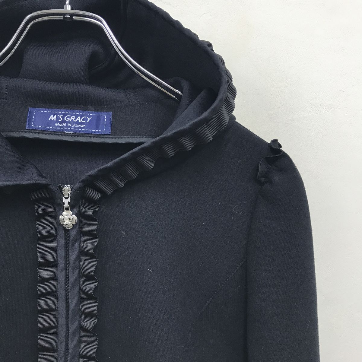 2N1861-R◆日本製 M'S GRACY エムズグレイシー ジップアップポンチパーカー◆サイズ40 レディース 婦人 トップス ブラック 黒 フリル