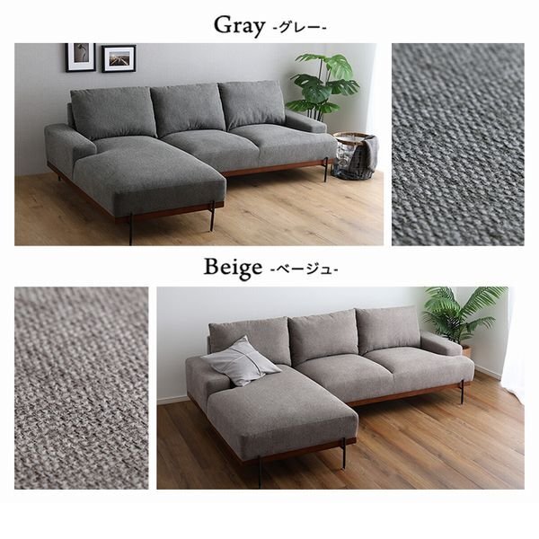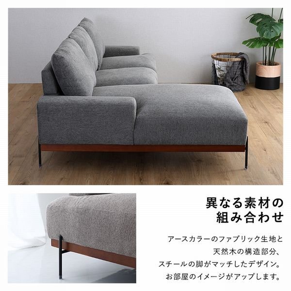 スチール脚がスタイリッシュな3人掛けカウチソファ! アースカラーのファブリック生地と天然木の構造部分、 スチール脚が絶妙にマッチしたデザインで、お部屋の雰囲気をあげてくれること間違いなし! ワイドなゆとりのあるサイズ感なので、リビングでの時間をより快適にしてくれます。 |