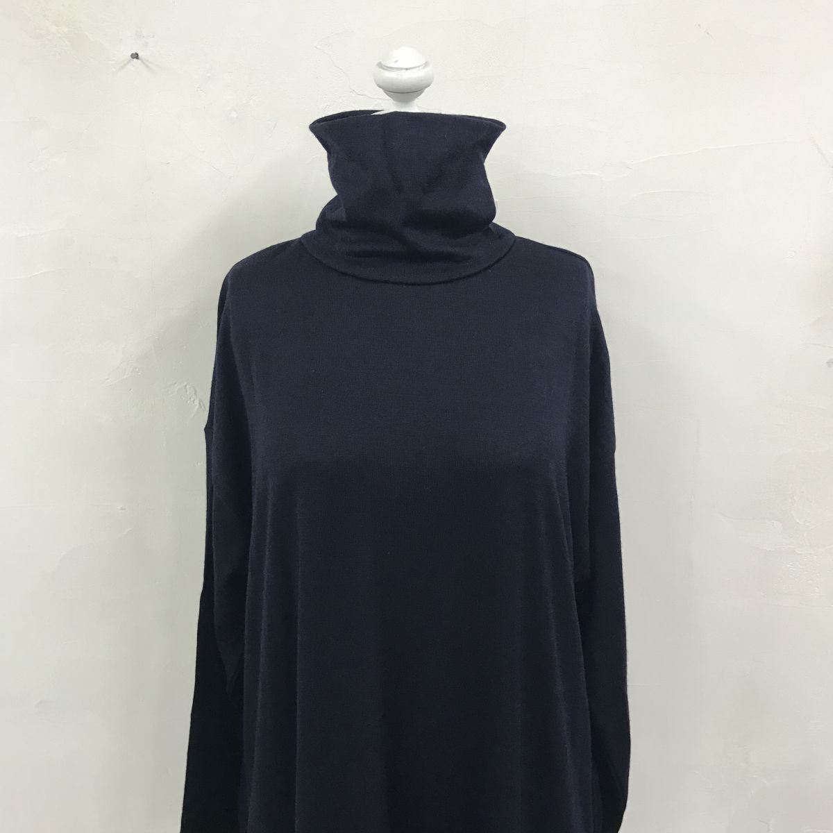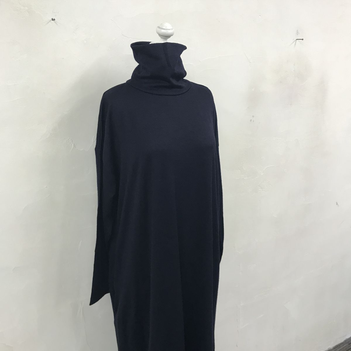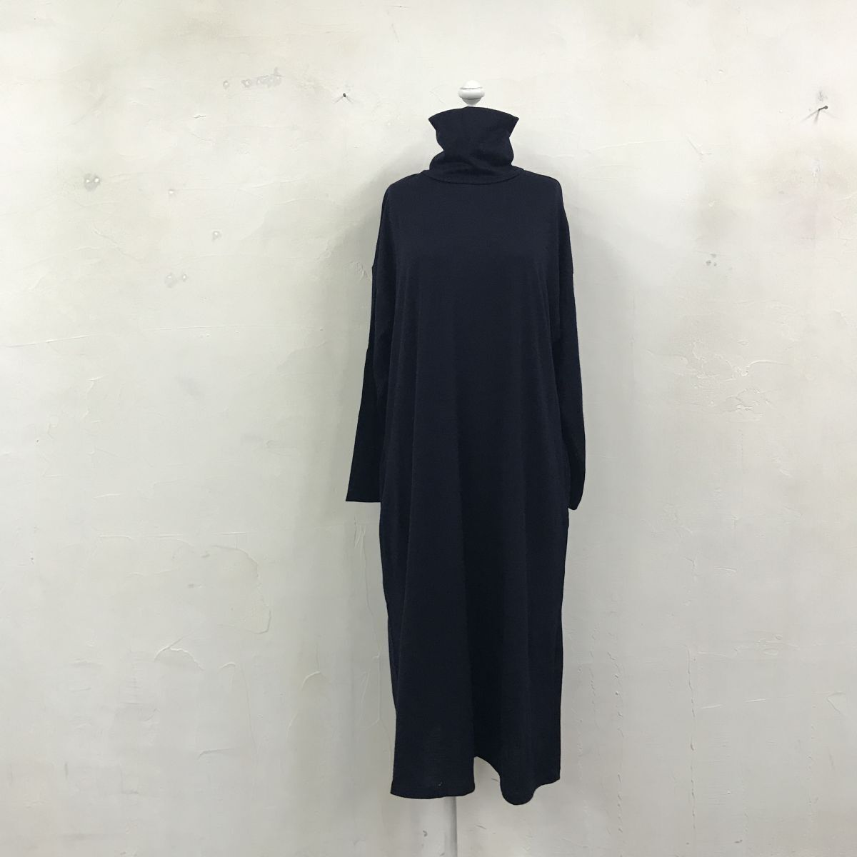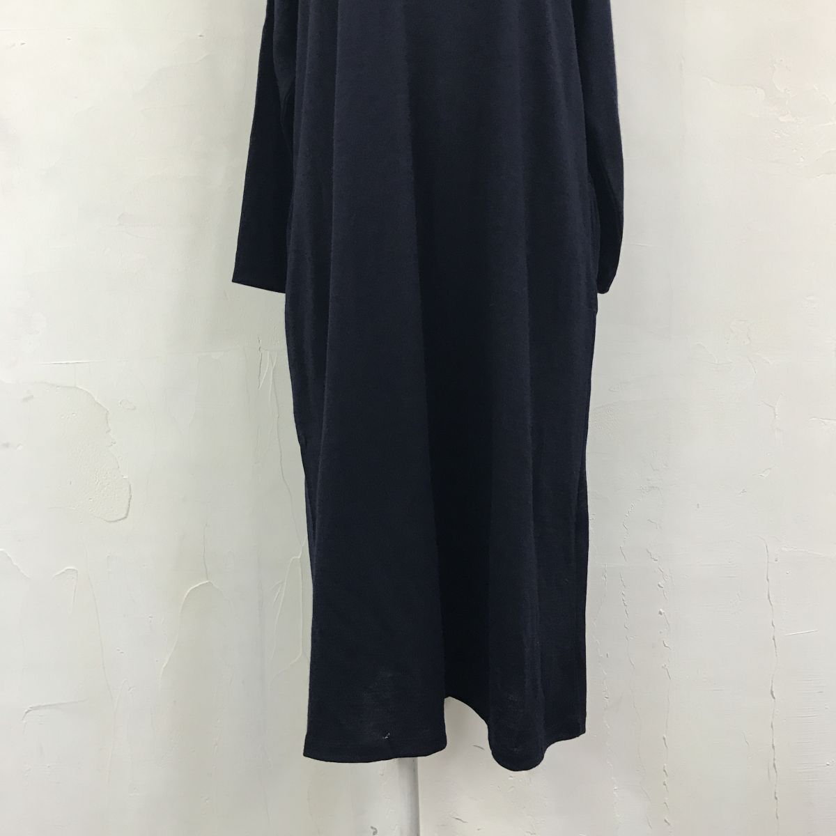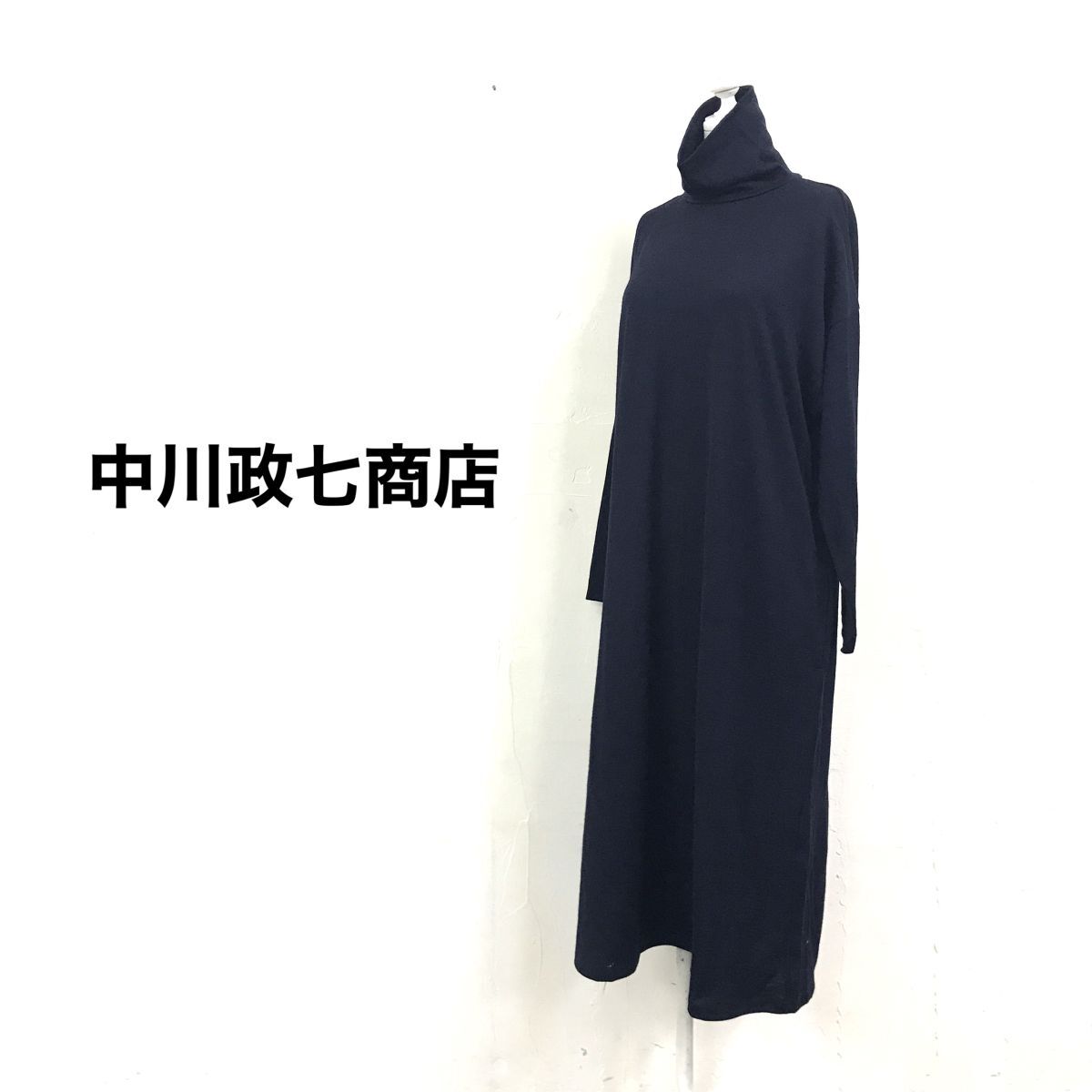 2N1658-G-N◆ 中川政七商店 ナカガワマサシチショウテン タートルネックハイゲージロングニットワンピース 無地 ◆ ネイビー ウール
