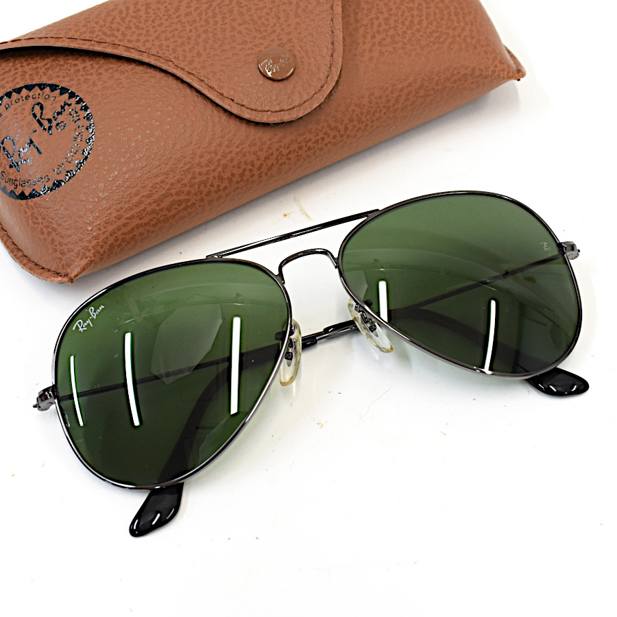 1円◆美品/RayBan/レイバン/サングラス/アイウェア/アビエーター/ラージメタル/ガンメタ◆E.Bgo.tI-23