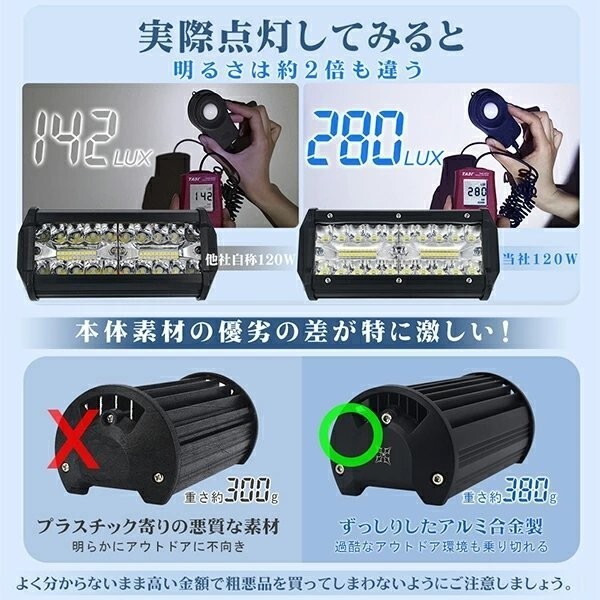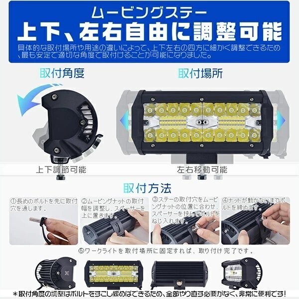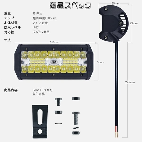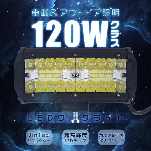 ●ワークライト 作業灯 120W 集光&投光両立 超高輝度 電圧:8Vから60V 車載/屋内外照明 角度調整機能付