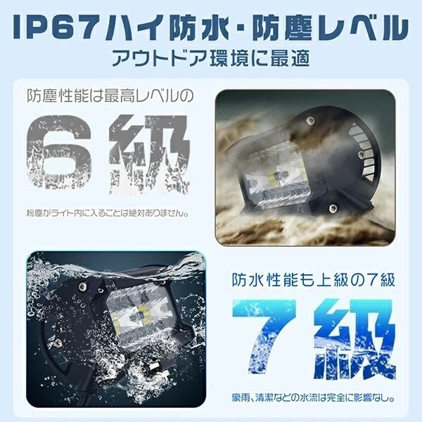 ●発光色:昼光色(約6000K) 本体材質:アルミ合金 防塵防水防護等級:IP67