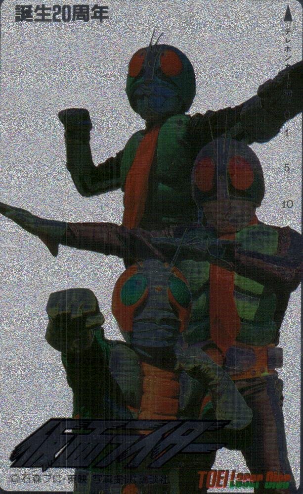 ★仮面ライダー 誕生20周年 石森プロ 銀ピカ 傷あり★テレカ50度数未使用dp_181