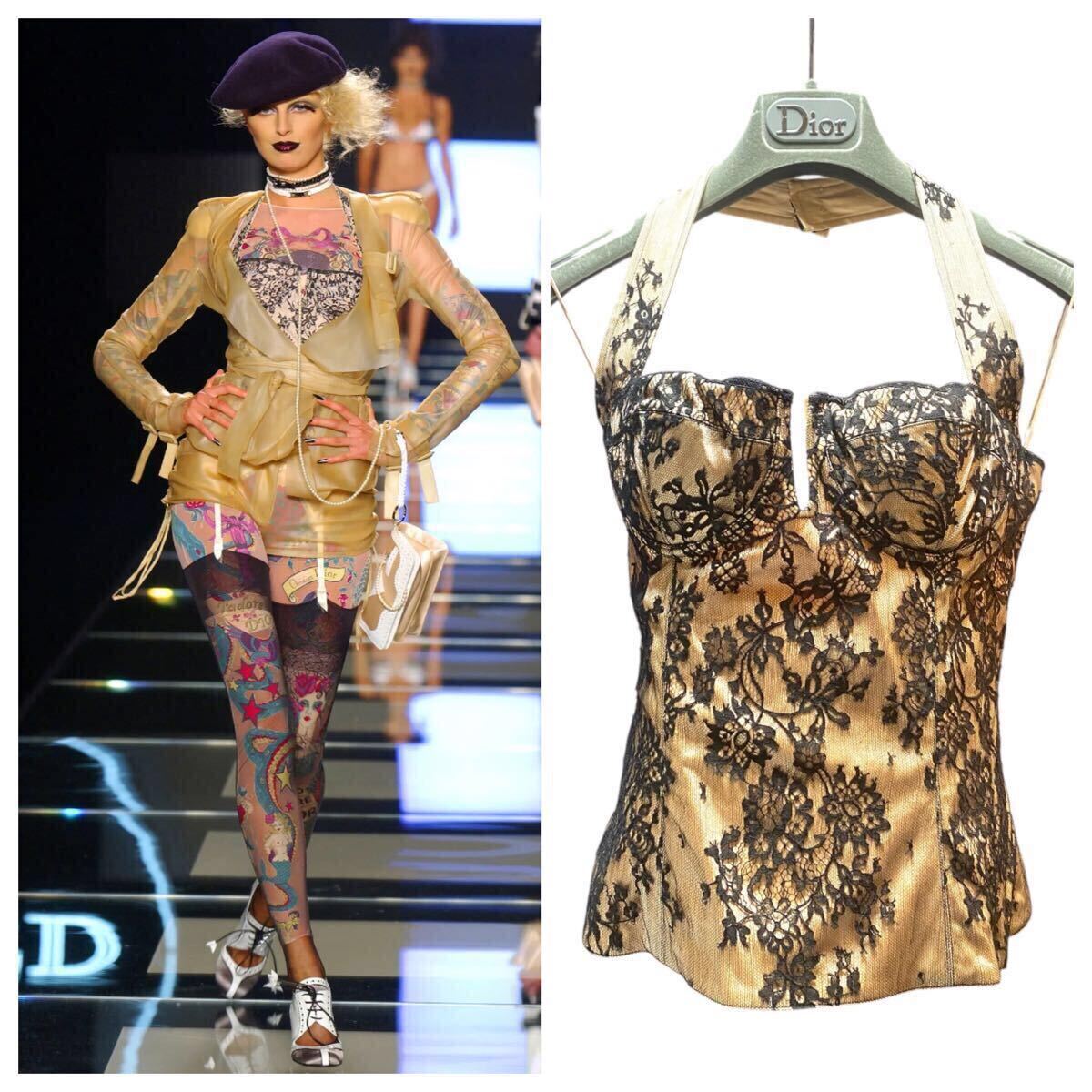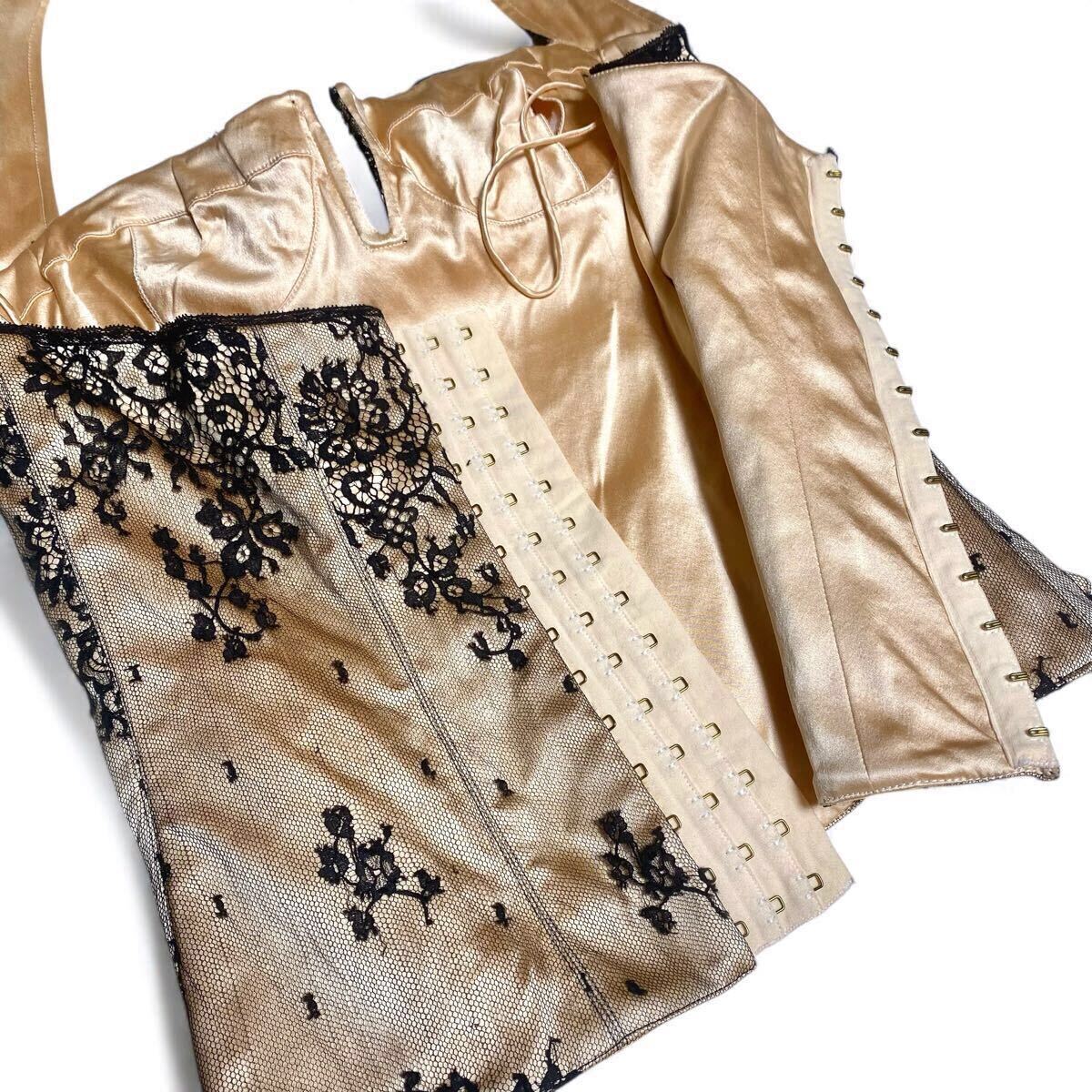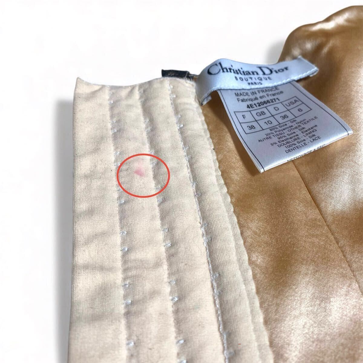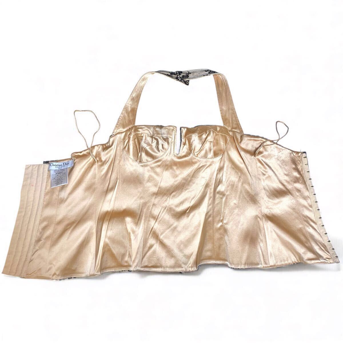 ガリアーノ期のChristian Dior 2004 SPRINGのトップスの出品です。掲載写真にもございますが、内側ホックの付近に赤い汚れが少しございます。写真9枚目にありますようにディオールのスカートをお付けいたします。本体のみの出品です。ハンガー等は付きません。