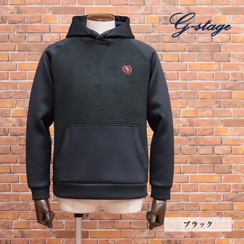 1円/秋冬/g-stage/46サイズ/パーカー ダンボールニット&ボア スポーティー Dr.YAMORIコラボ ゴルフ 新品/黒/ブラック/je103/