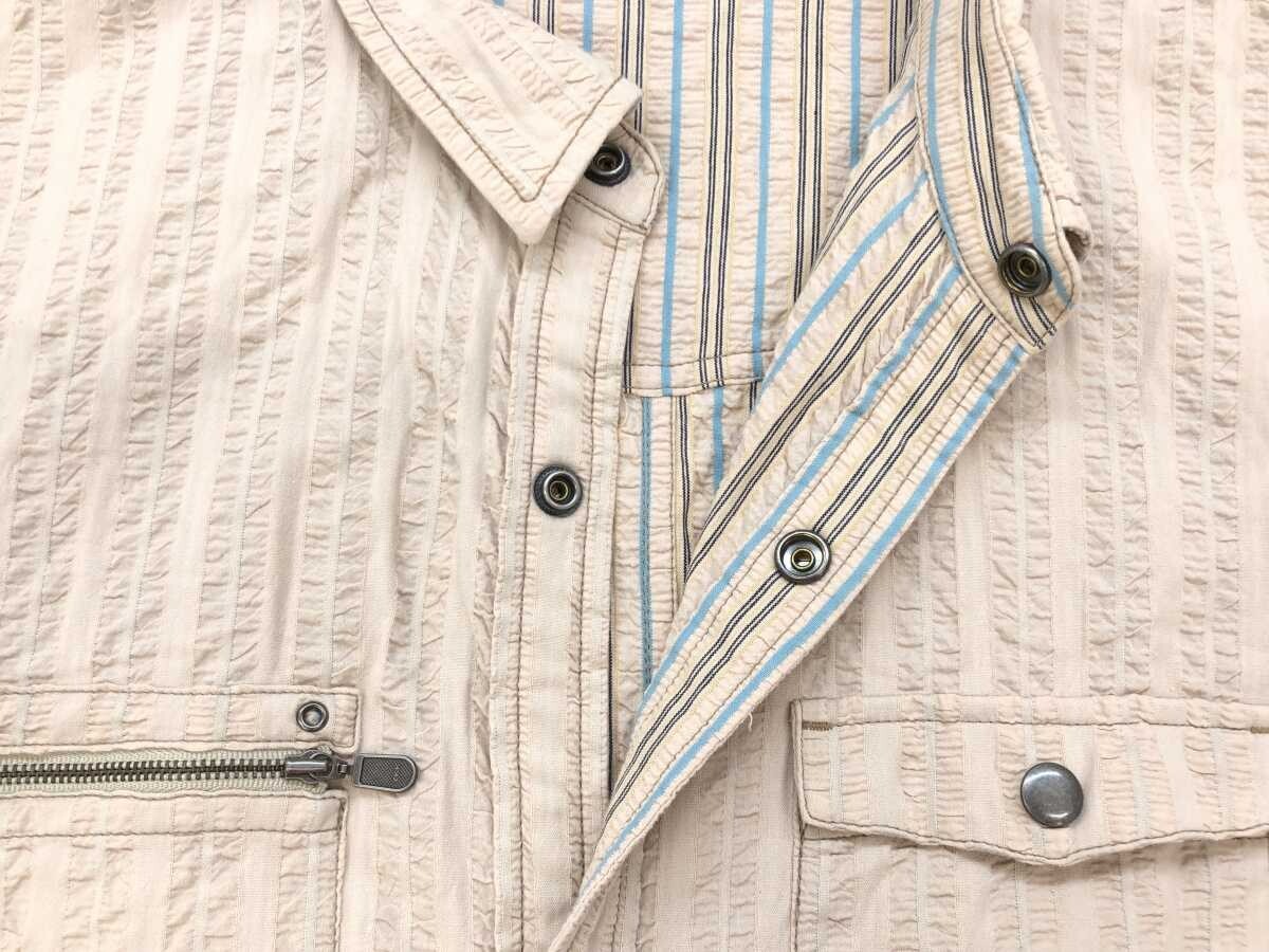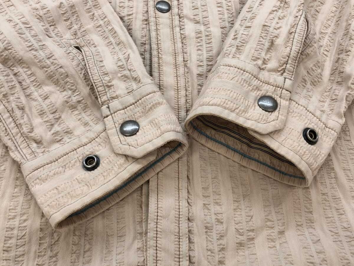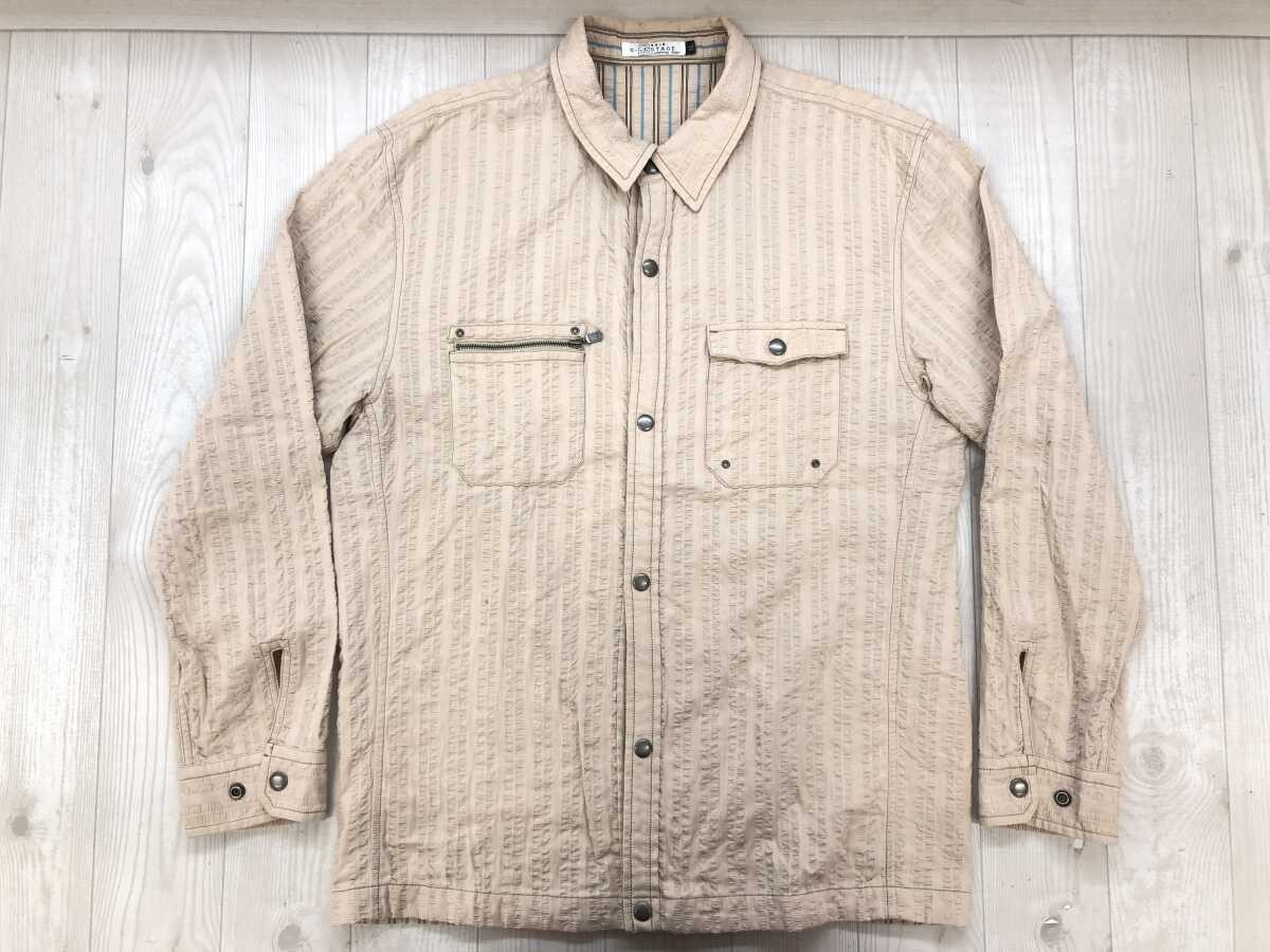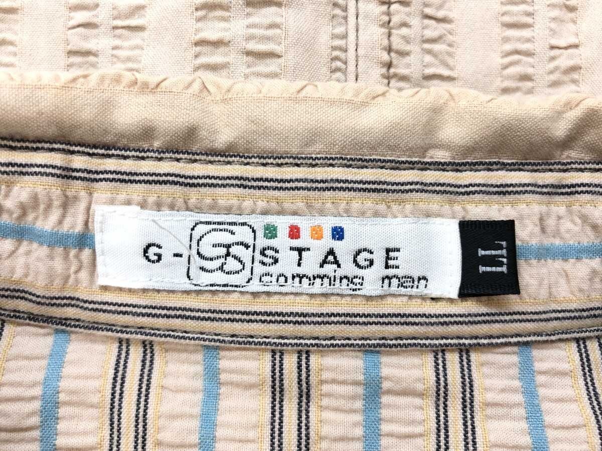 ジーステージ G-STAGE レトロ アメカジ トラッド ストライプ シアサッカー 二重織り シャツ メンズ スナップボタン 綿100% LL ベージュです。