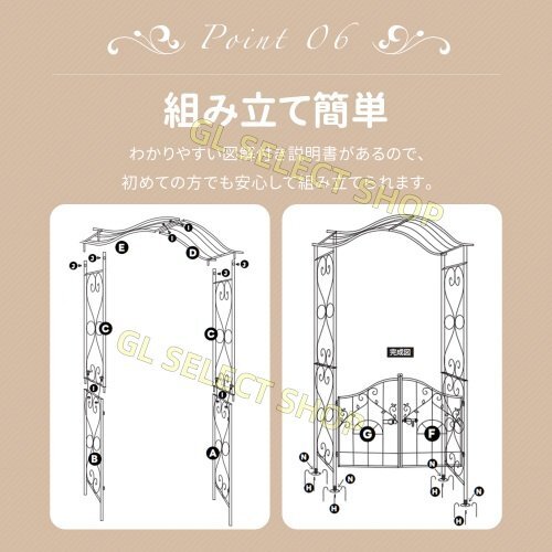 • ◎02 【優美な外観】独自のデザインは、優雅なラインが際立ち、現代的でありながらも、クラシックな魅力を感じさせます。立体的な小鳥と葉のデザインが施されたこのガーデンアーチは、優雅で華やかな雰囲気をお庭に加え、植物をより引き立てます。