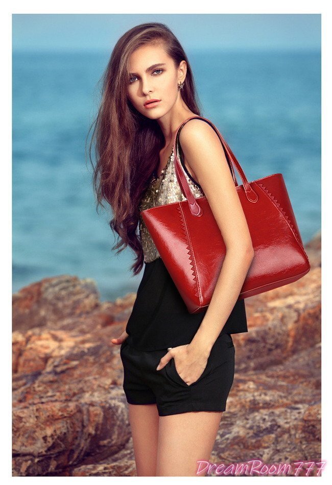 classic ポイントフリル 大きめ レザー トートBAG【レッド】ハンドバッグ セレブ 合皮革 K-092-1