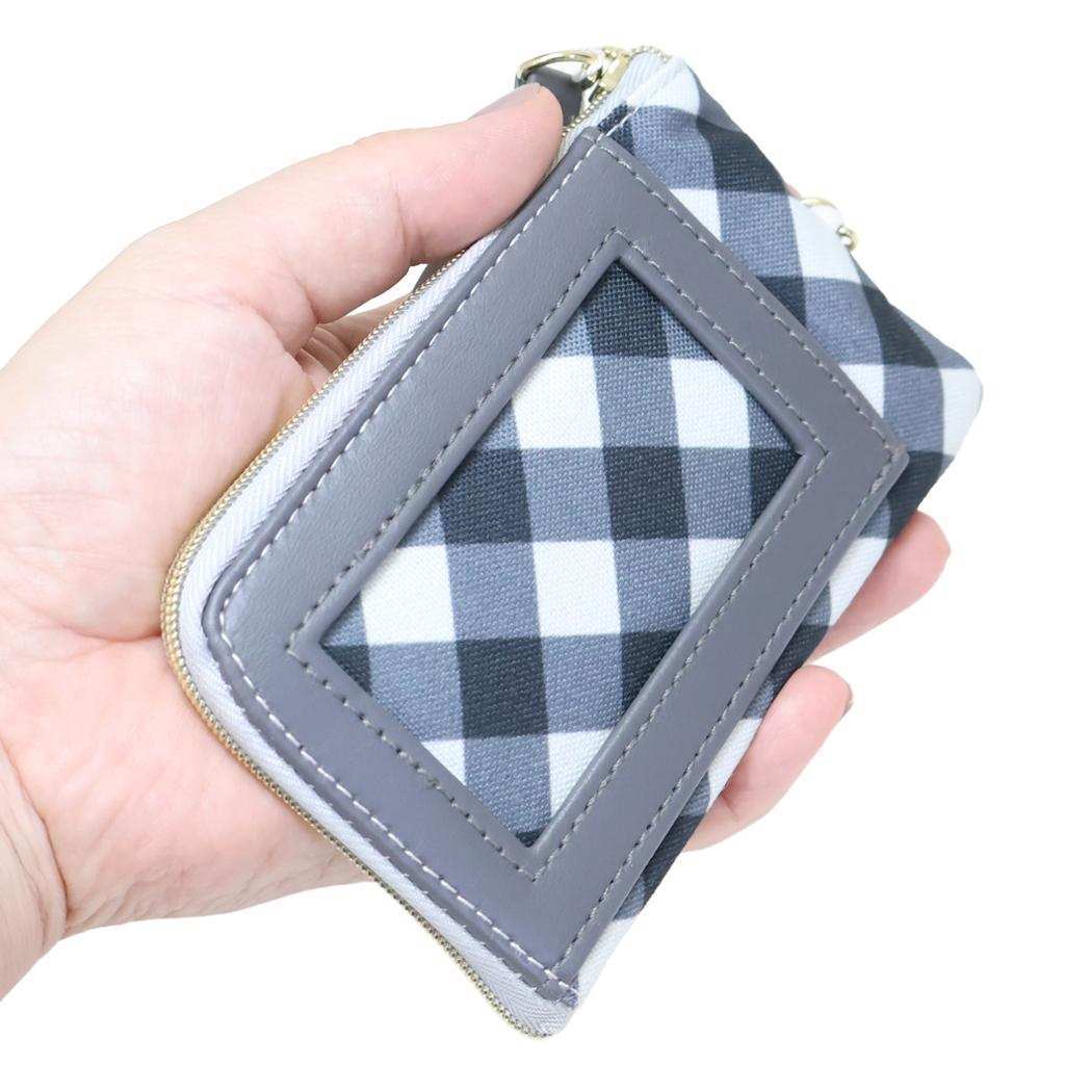 内側に3つの収納付き。小銭や鍵、カードをひとまとめ ディックブルーナの人気絵本[miffy/ミッフィーちゃん]グッズにまたまた可愛いnewアイテム登場斜めに構成デザインされた格子柄のダイアゴナルチェックシリーズこちらは[リール付きパスポーチ]裏側にはクリアな窓付きカードポケットがあります。リールが外側と内側に付いており、カバンに取り付けたまま改札を通ったり鍵を開けたりできます他にも多種多様なパスケースありますのでお気に入りを揃えてくださいサイズ:約80x130x10mm素材:ポリエステル、合成皮革