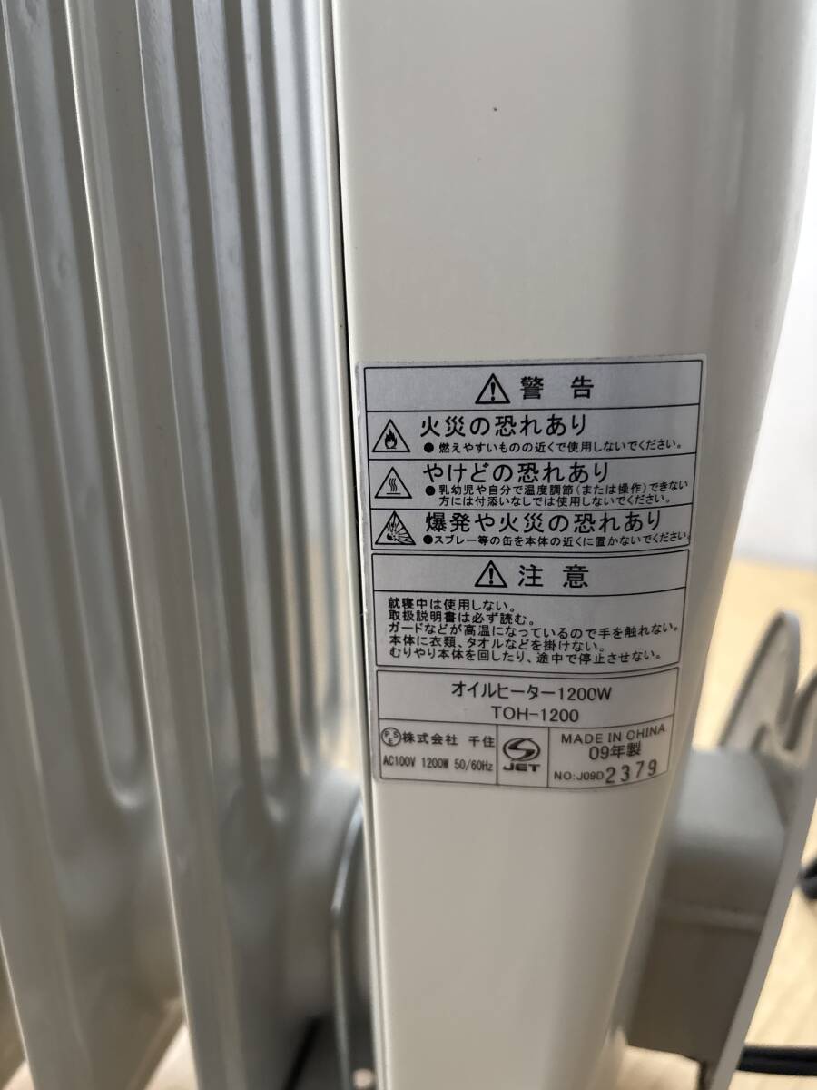 栃木発 暖房器具 TOH-1200 2009年製 動作確認済み 引き取り大歓迎!TEKNOS オイルヒーター 1200W