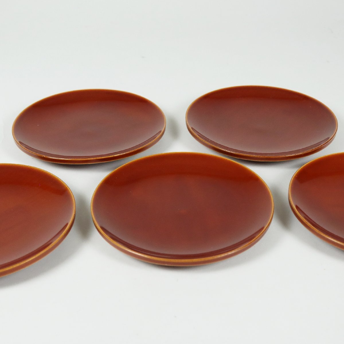 【古陶情趣】現代 飛騨春慶塗 天然木 菓子皿 5寸 5客揃 茶道具 料亭 懐石 旅館 日本料理 居酒屋 500067wqS