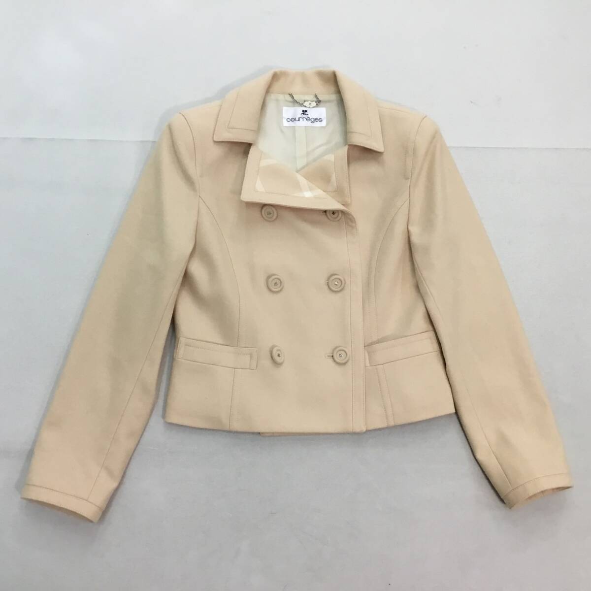 ・商品名■ 日本製 courreges クレージュ セットアップ フォーマル ジャケット ワンピース クリーム色 サイズ9 ウール100% ベルト付 0.98kg