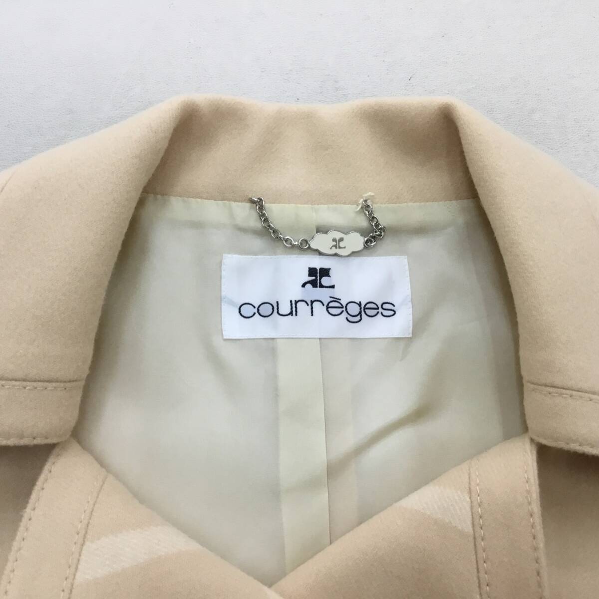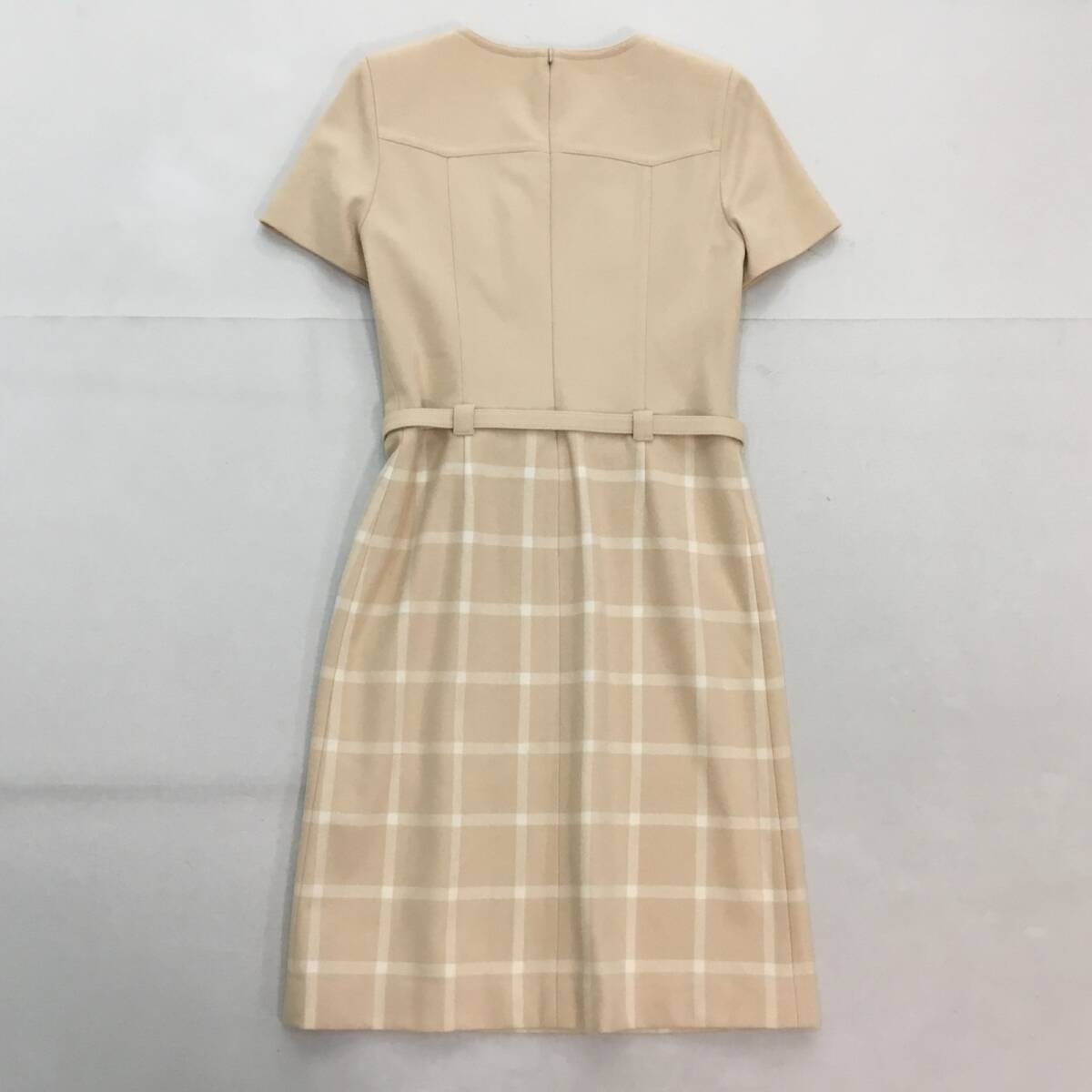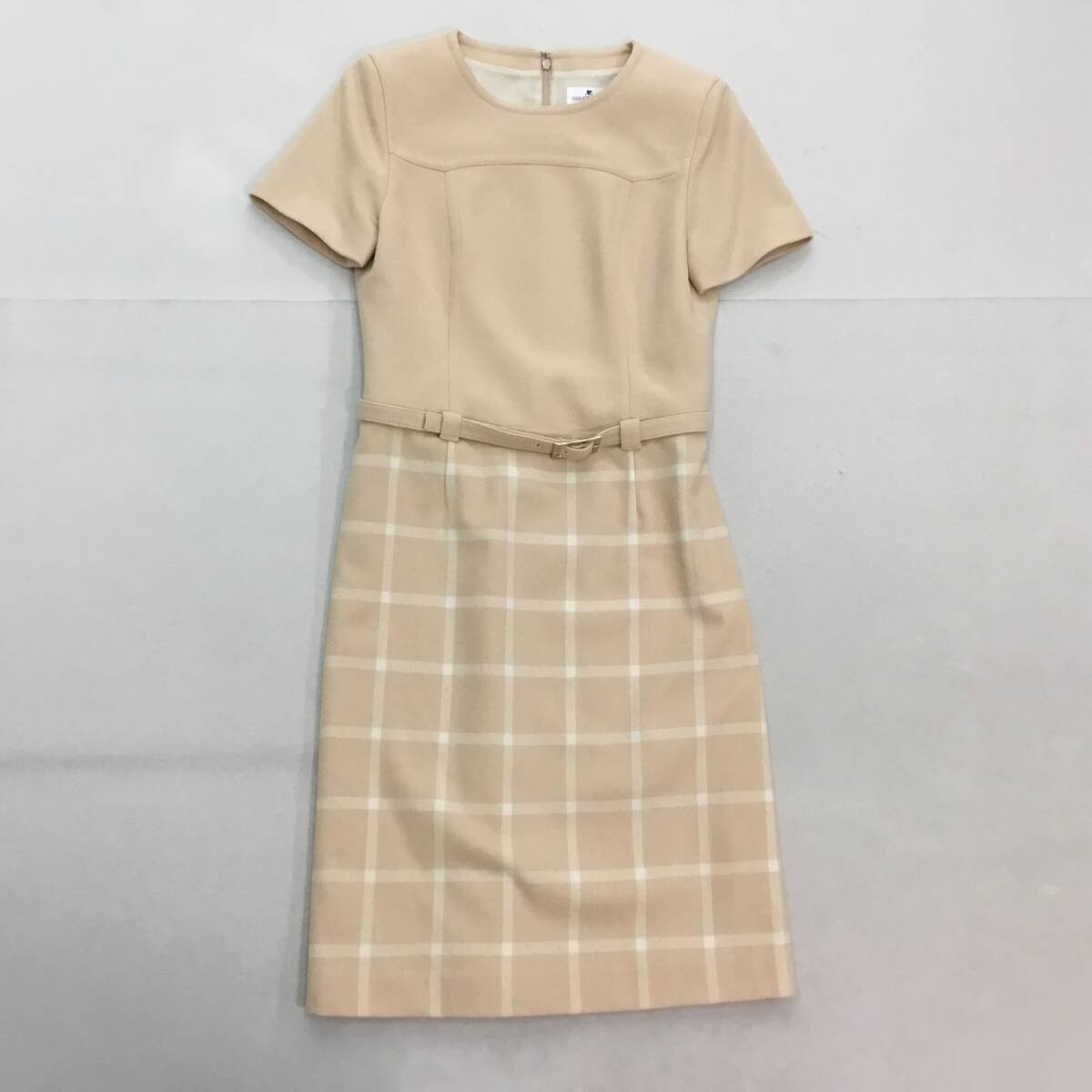 ■日本製 courreges クレージュ セットアップ フォーマル ジャケット ワンピース クリーム色 サイズ9 ウール100% ベルト付 0.98kg