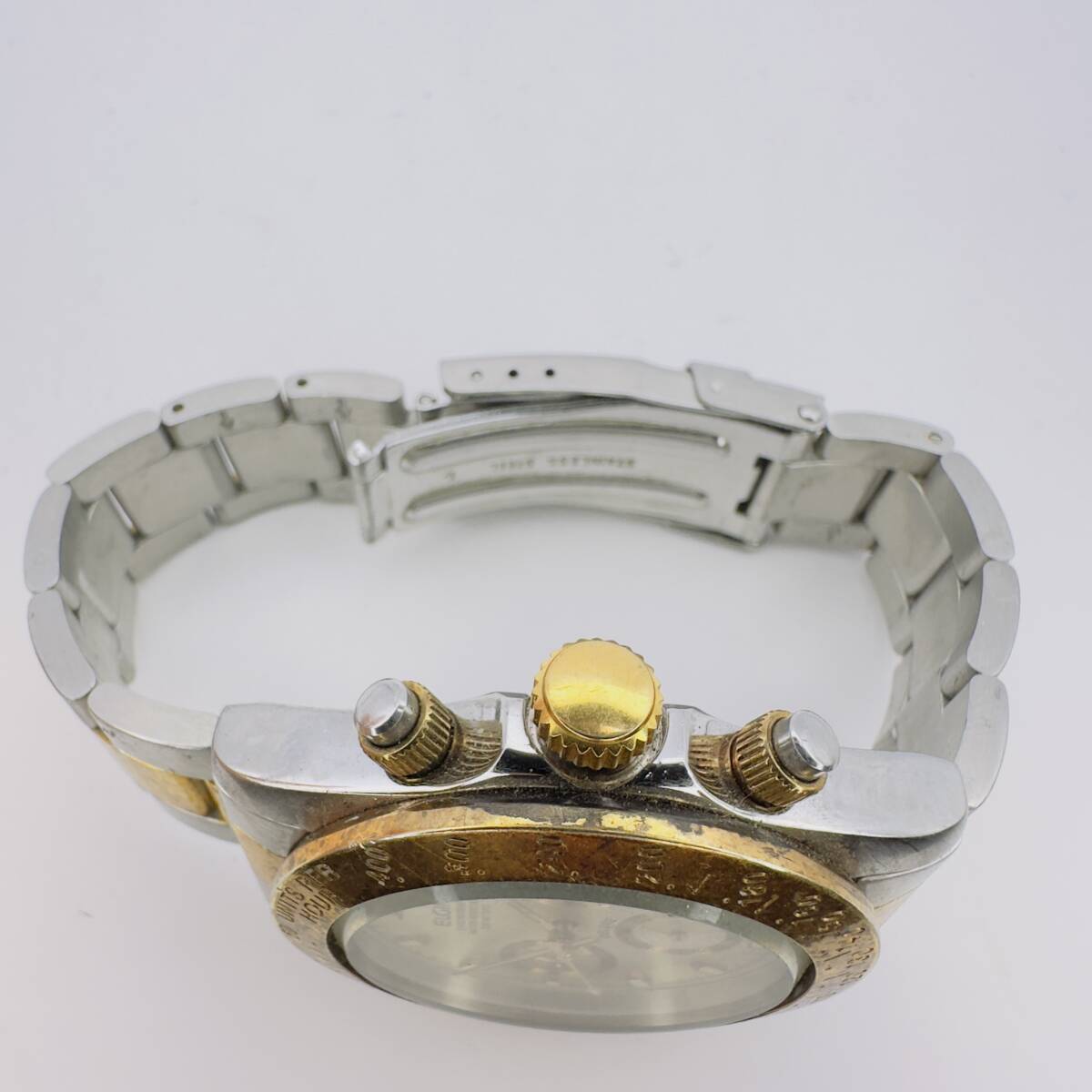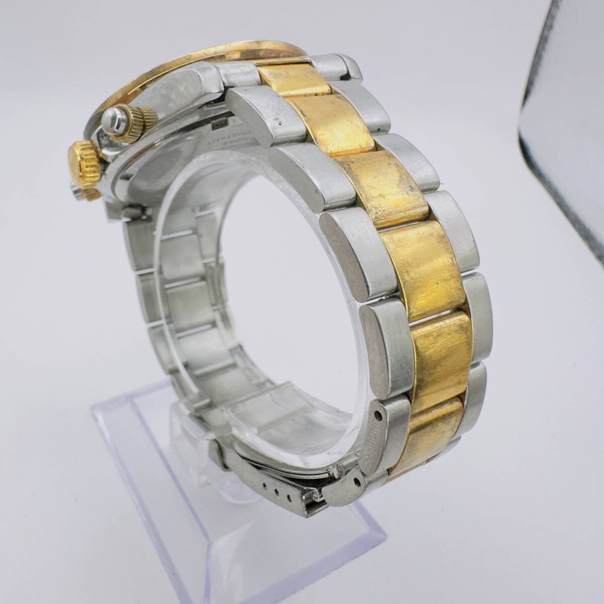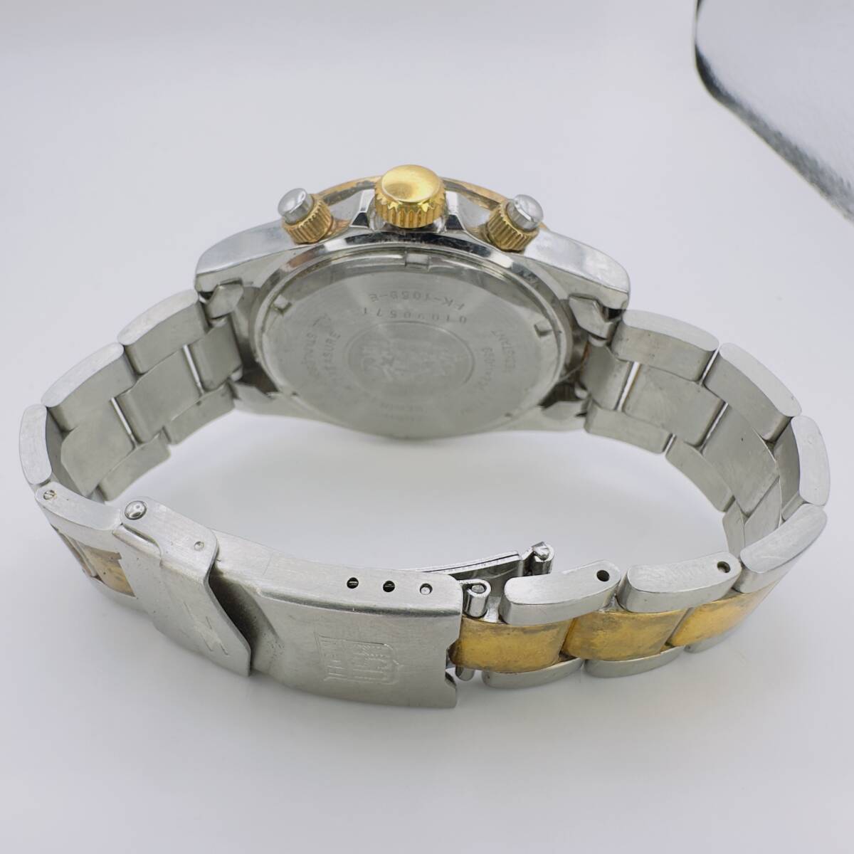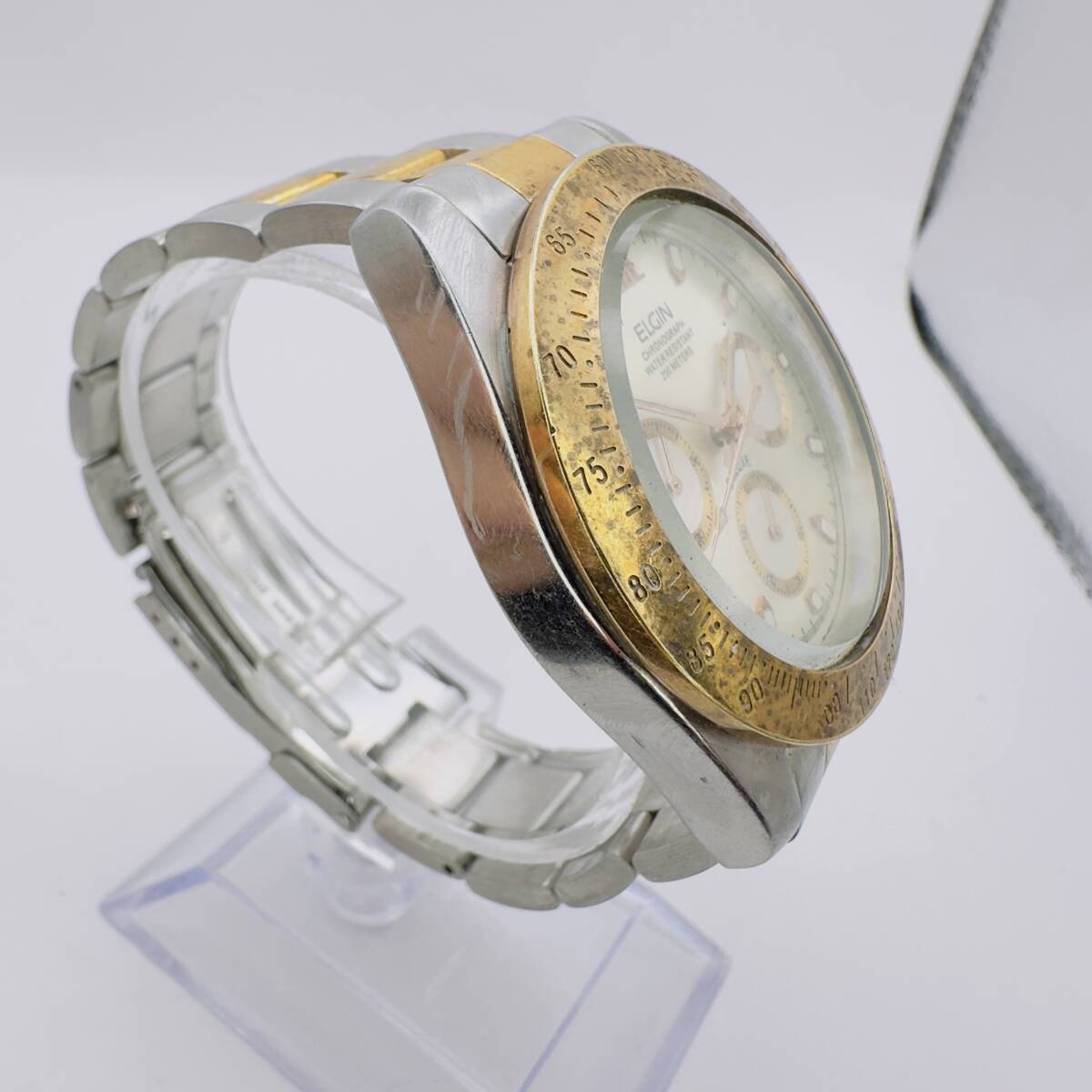こちらは ELGIN CHRONOGRAPH DELUXE(型番 FK-1059-E)のモデルです。40mmのしっかりとしたサイズ感に加え、ゴールド×シルバーのコンビデザインが特徴的で存在感のある一本です。