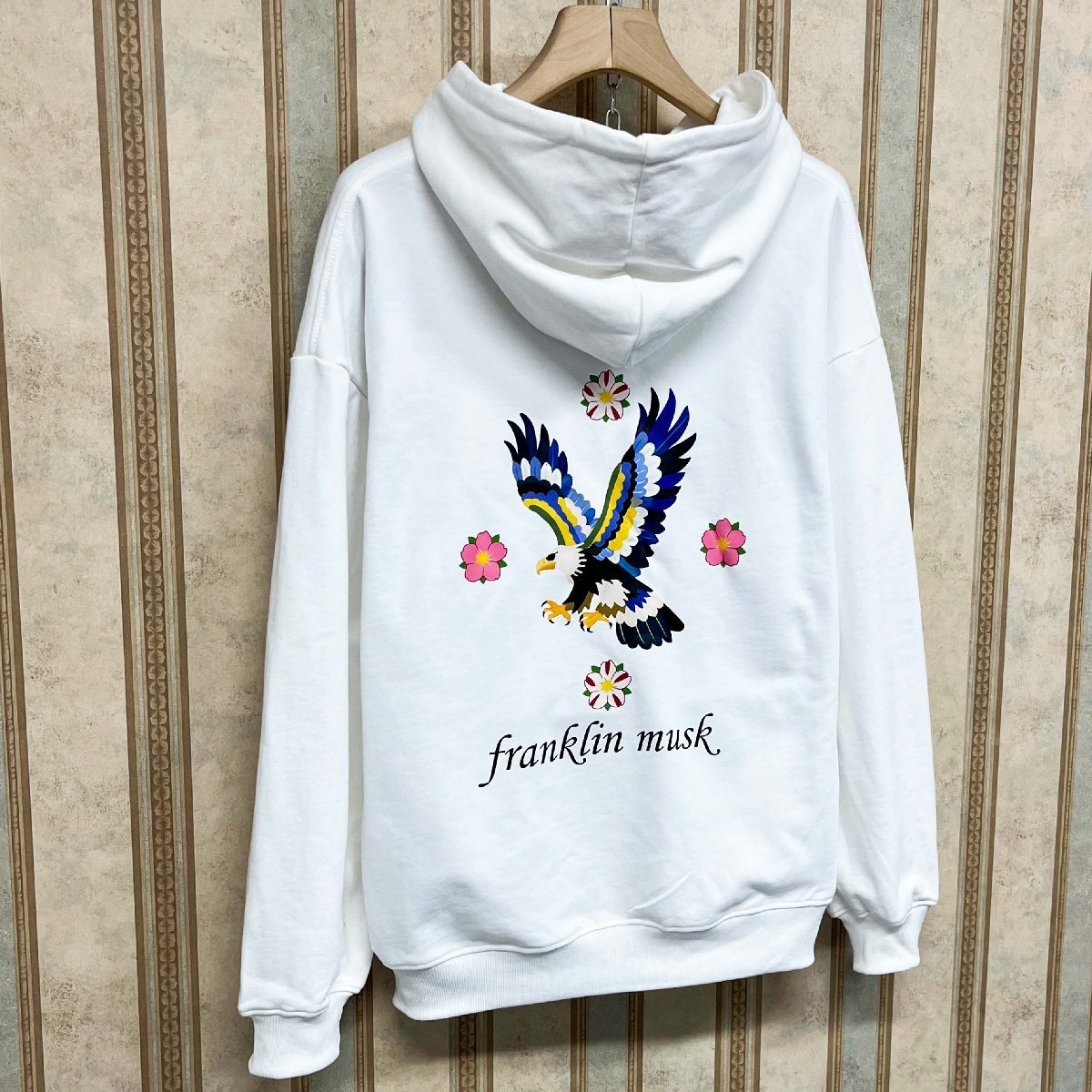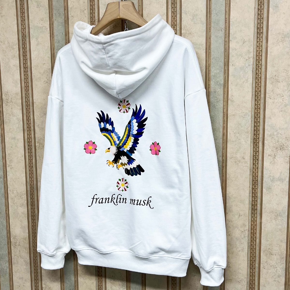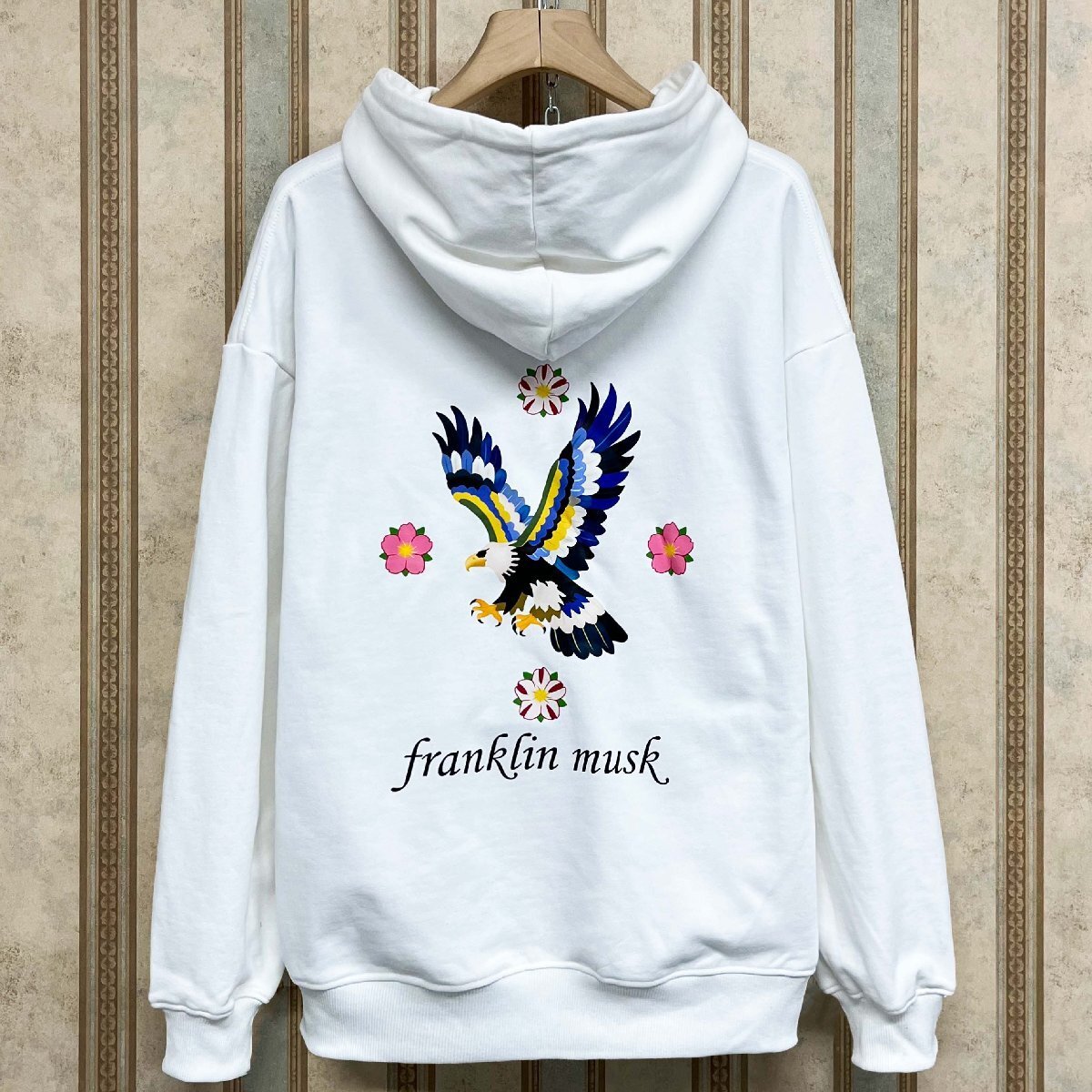 個性・パーカー 定価4万 FRANKLIN MUSK・アメリカ・ニューヨーク発 エジプト綿100% 保温 ソフト 鷹柄 花柄 スウェット カジュアル 秋冬 サイズ1