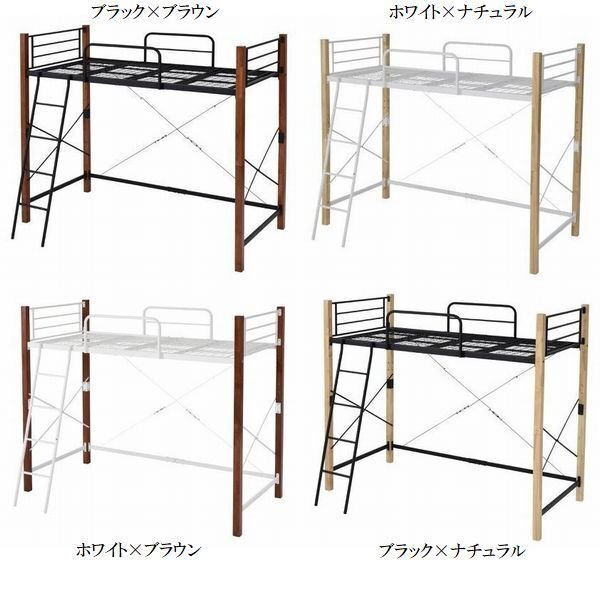 温かみのある天然木とクールなスチールのコントラストがおしゃれな、 お部屋のスペースを有効活用できるロフトベッドです。 ベッド下のスペースにはデスクを置いたりソファを置いたり、 生活空間の一部としても十分使える高さが確保されています。 お部屋の雰囲気にあわせて4カラー展開が嬉しい! |