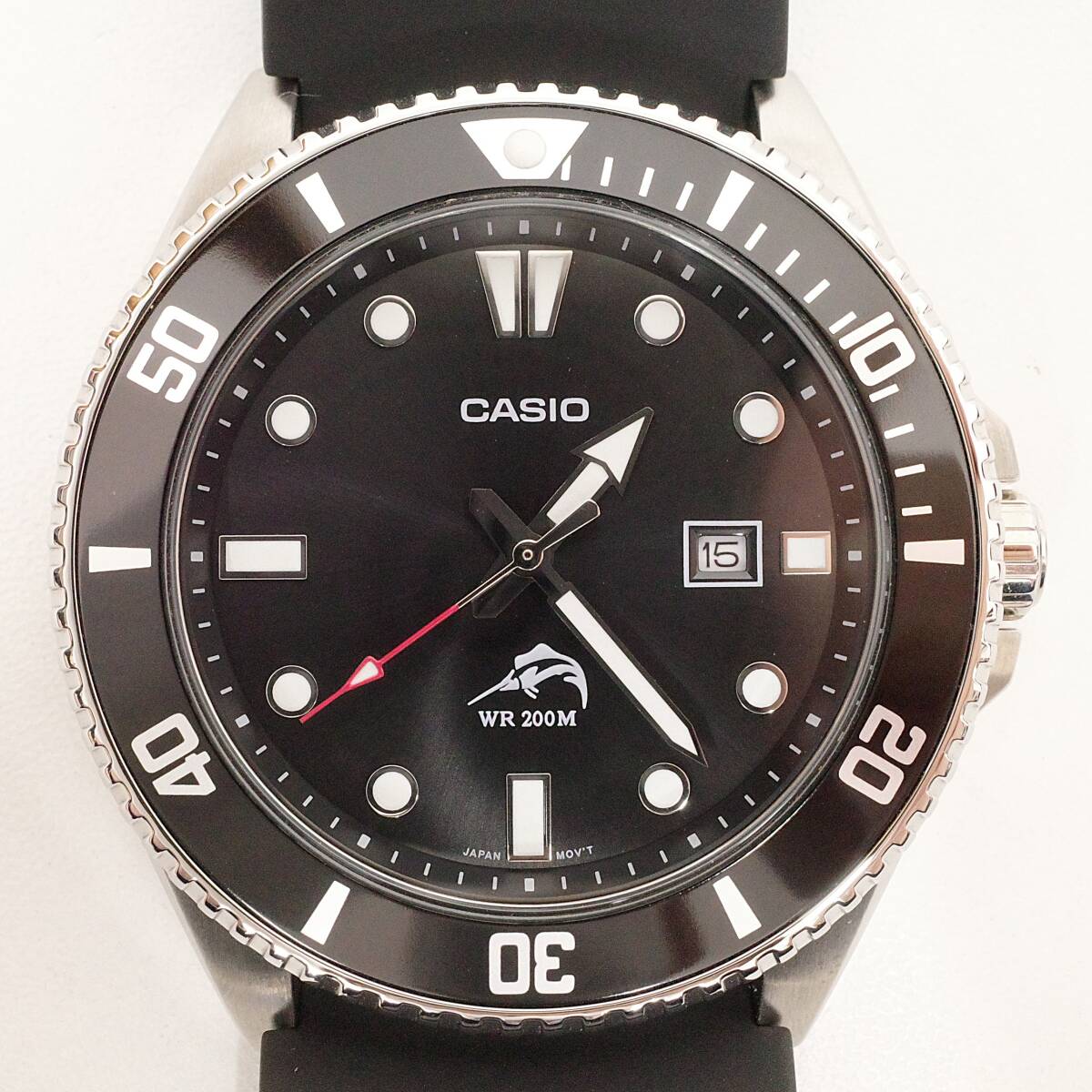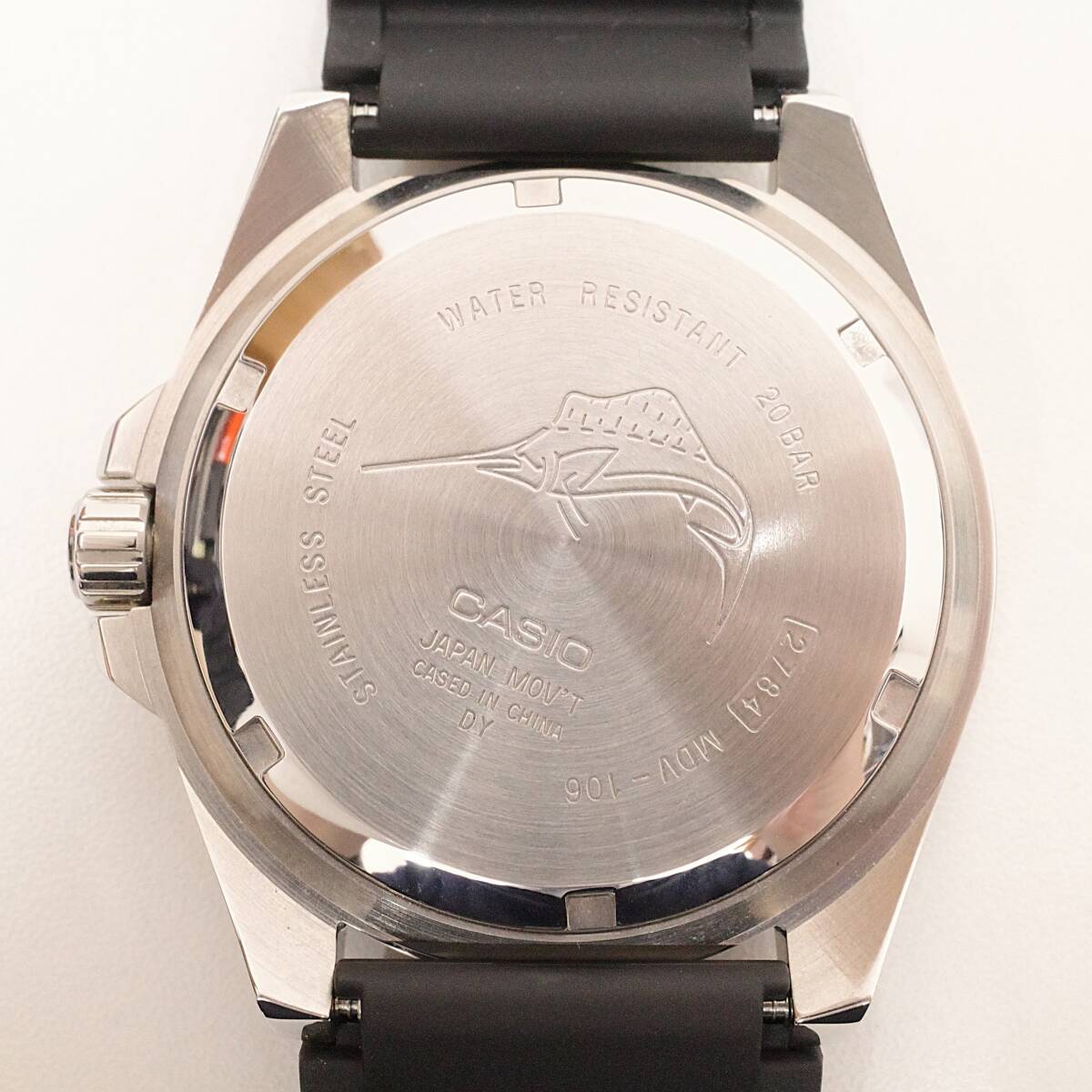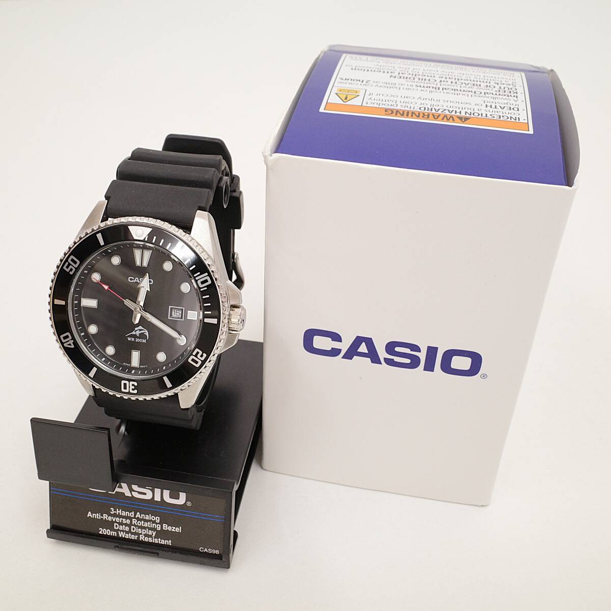 ・CASIO カシオ MDV-106 ダイバー 腕時計 黒 ブラック QZ クォーツ 台座付き 箱付きです。