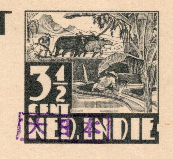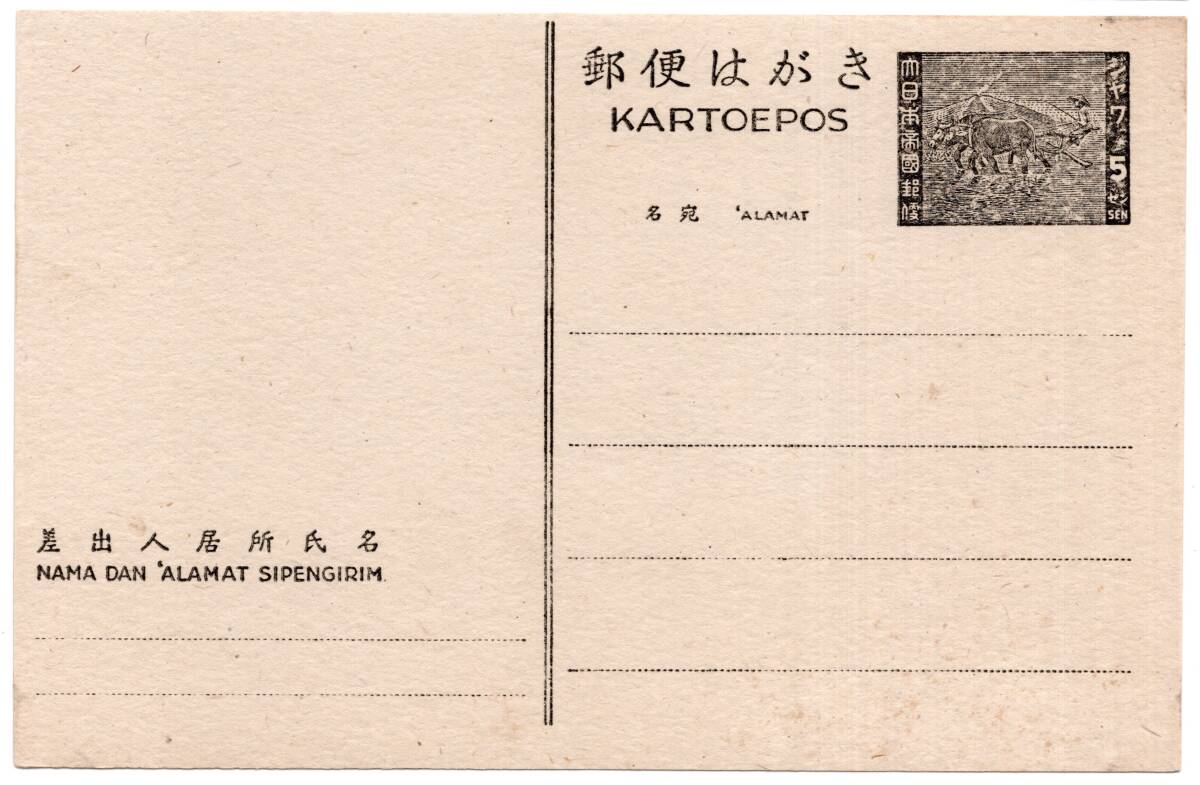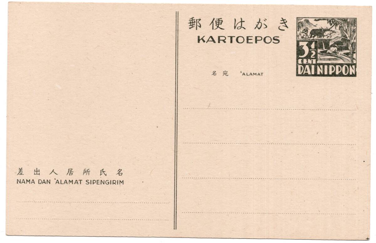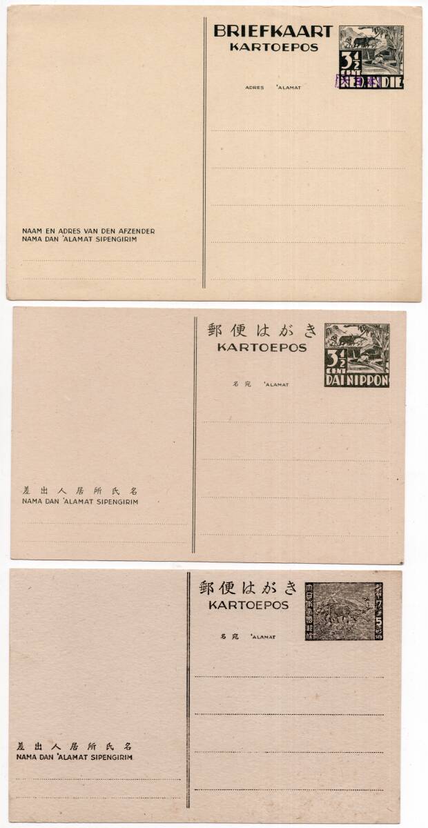 [3216]南方占領地 ジャワ 正刷はがき 2種、蘭印はがき 囲み大日本 紫加刷 計3種