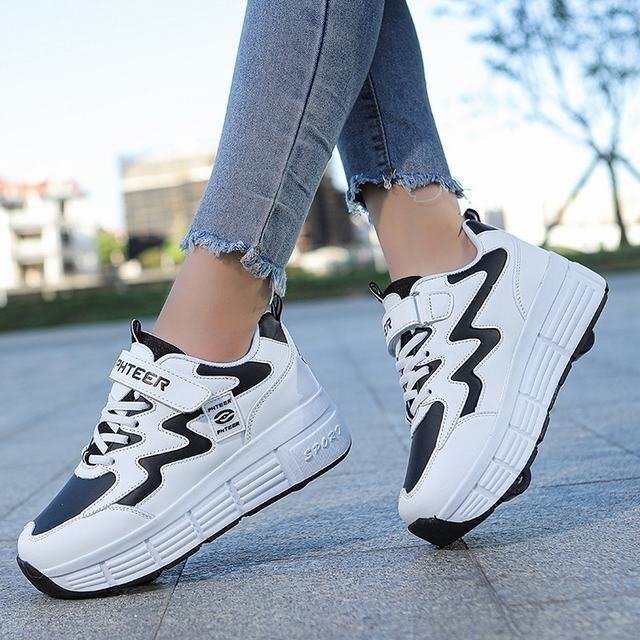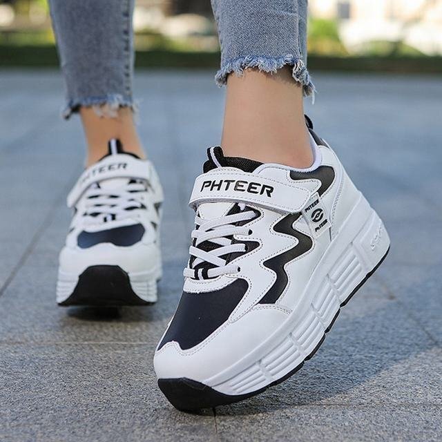 インラインスケート子供用ローラースケート子供普通の子供用運動靴として履けるキッズスニーカーベルクロ&シューレースローラースケート靴 【アッパー】:合成繊維 【インナー素材】:メッシュ 【ソール】:ゴム 【クローズ】:ベルクロ/レース 【ホイールタイプ】: 2輪 【ヒールの高さ】:2 cm 【デザイン】: アウトソールの隠し格納式ホイール。アウトソールは高品質のゴムでできており、耐久性があり、滑りません。ボタンを押すと、ホイールがポップアップします。ボタンを押し続けると、ホイールが押し戻されてロックされます。 かかとのボタンからローラーをポップアップして非表示にすることができます。ローラースケートと通常のスポーツシューズの両方を使用できます。これらのスケートはまた非常に快適でスタイリッシュです。