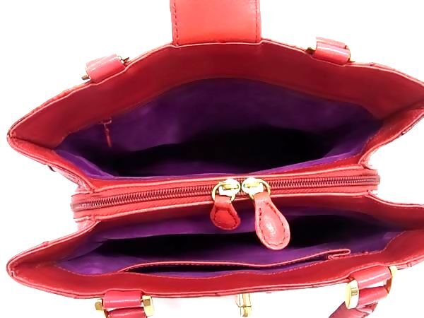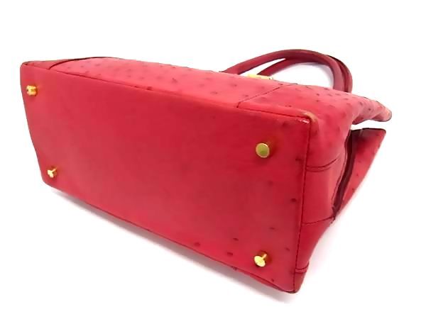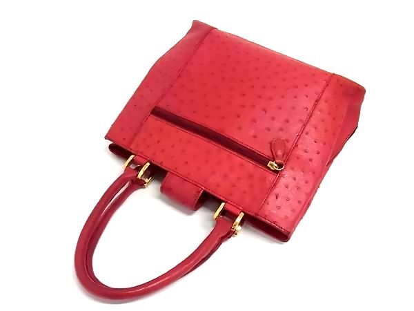 1円 ■極上■本物■美品■ オーストリッチ ターンロック ハンドバッグ トートバッグ レディース レッド系 GA6077