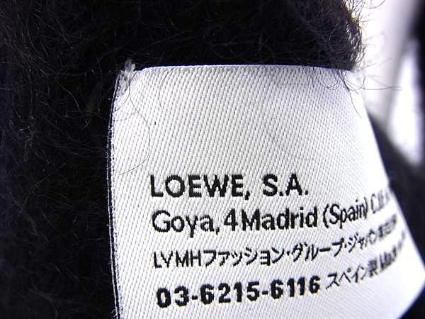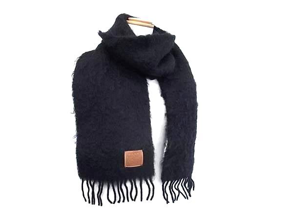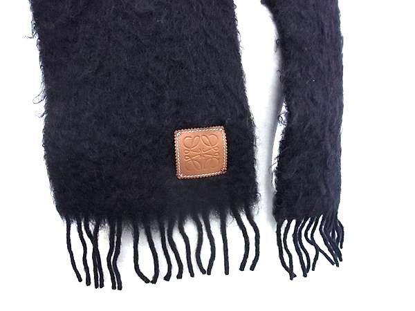 1円 ■極美品■ LOEWE ロエベ アナグラム モヘヤ50%×ウール48%×ナイロン2% フリンジ マフラー ストール ショール ブラック系 FI8644