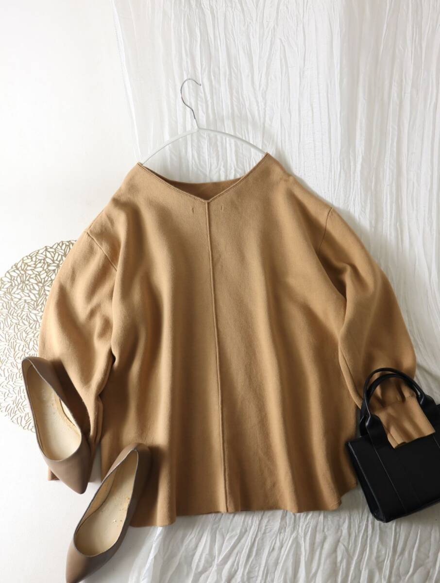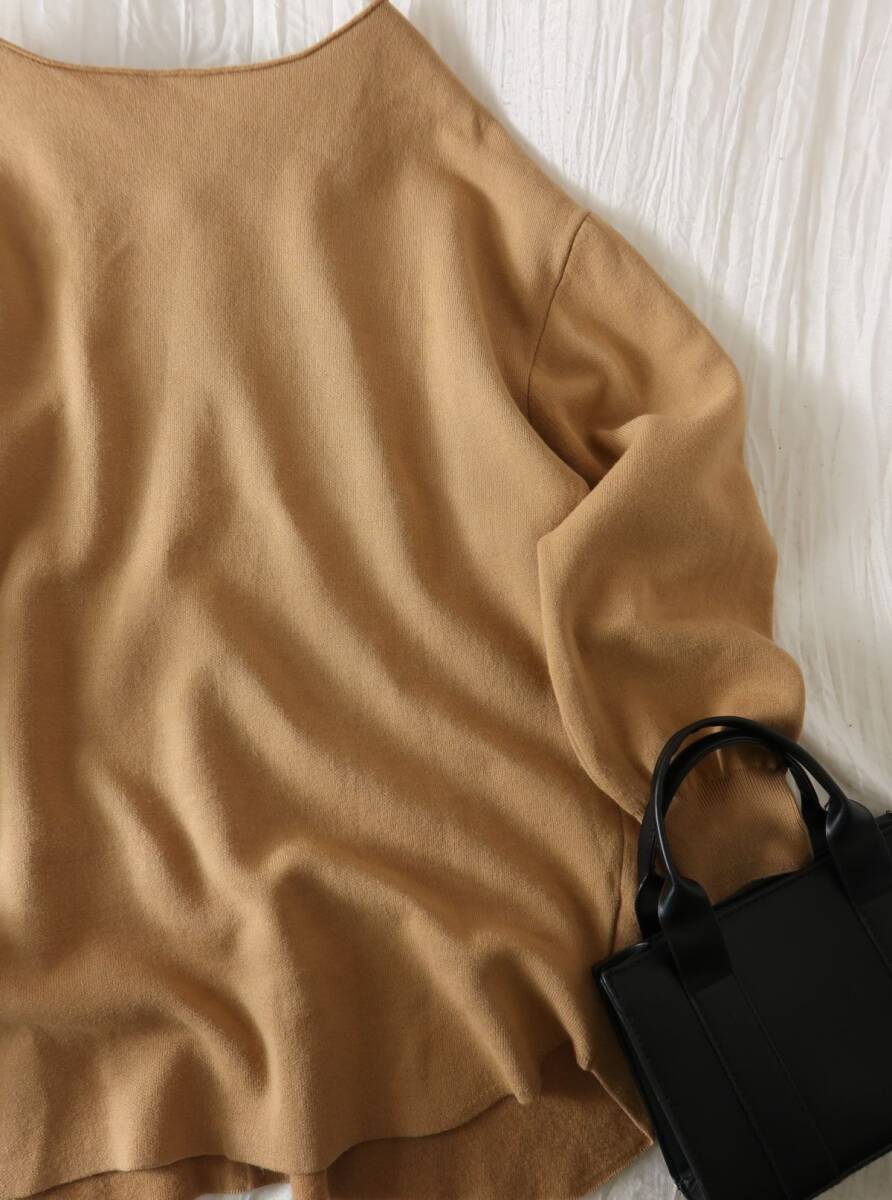 2万☆カリテ qualite☆洗える スウェット風ボートネックニットプルオーバー Fサイズ☆A-O 6395