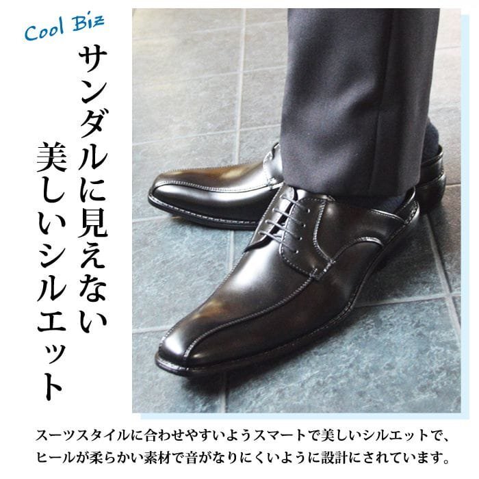 新品■24.5cm~25cm ビジネスシューズ メンズ サンダル オフィス スリッポン 革靴 クールビズ コンフォート 幅広 3E EEE 靴 紳士靴