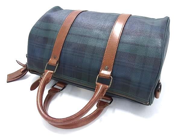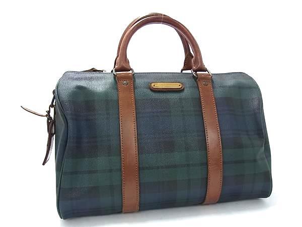 1円 POLO RALPH LAUREN ポロラルフローレン PVC×レザー チェック柄 ハンドバッグ トート ミニボストン レディース グリーン系 GB2736