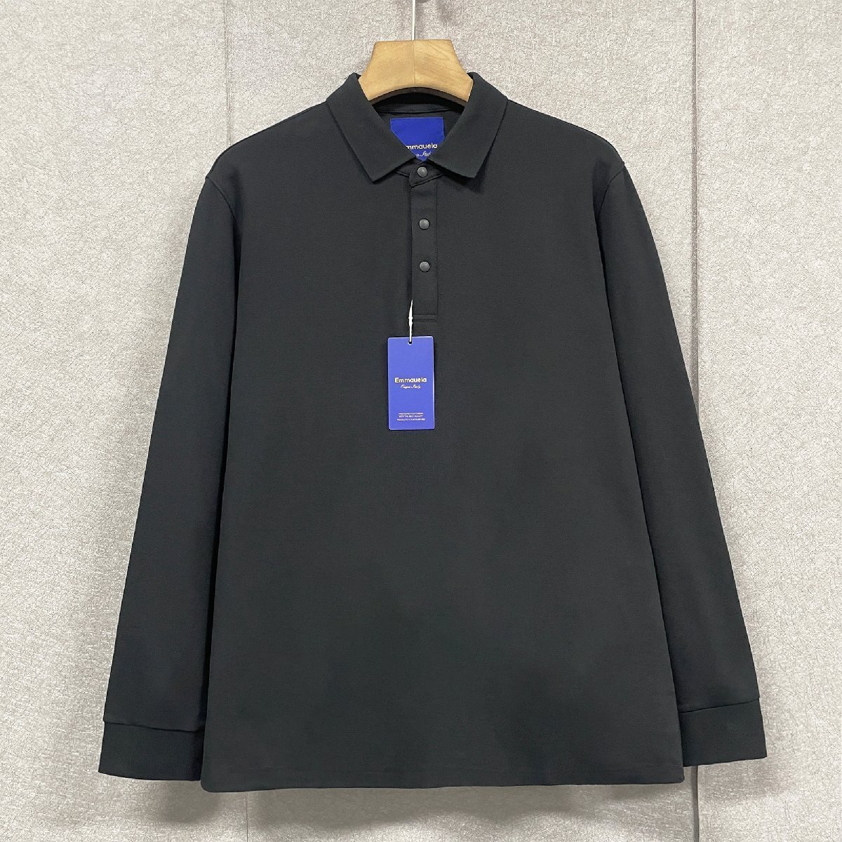 高級・定価4万◆Emmauela・イタリア・ミラノ発◆ポロシャツ 柔らか 長袖 無地 洗練 おしゃれ ビジネス ゴルフ 通勤 メンズ 紳士 XL/50サイズ