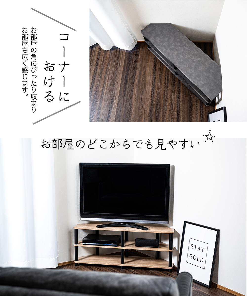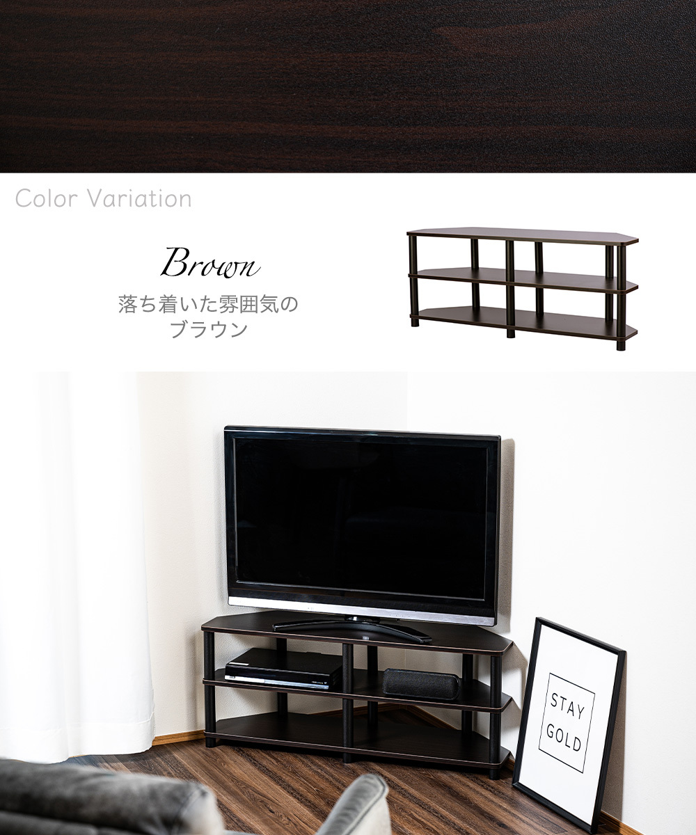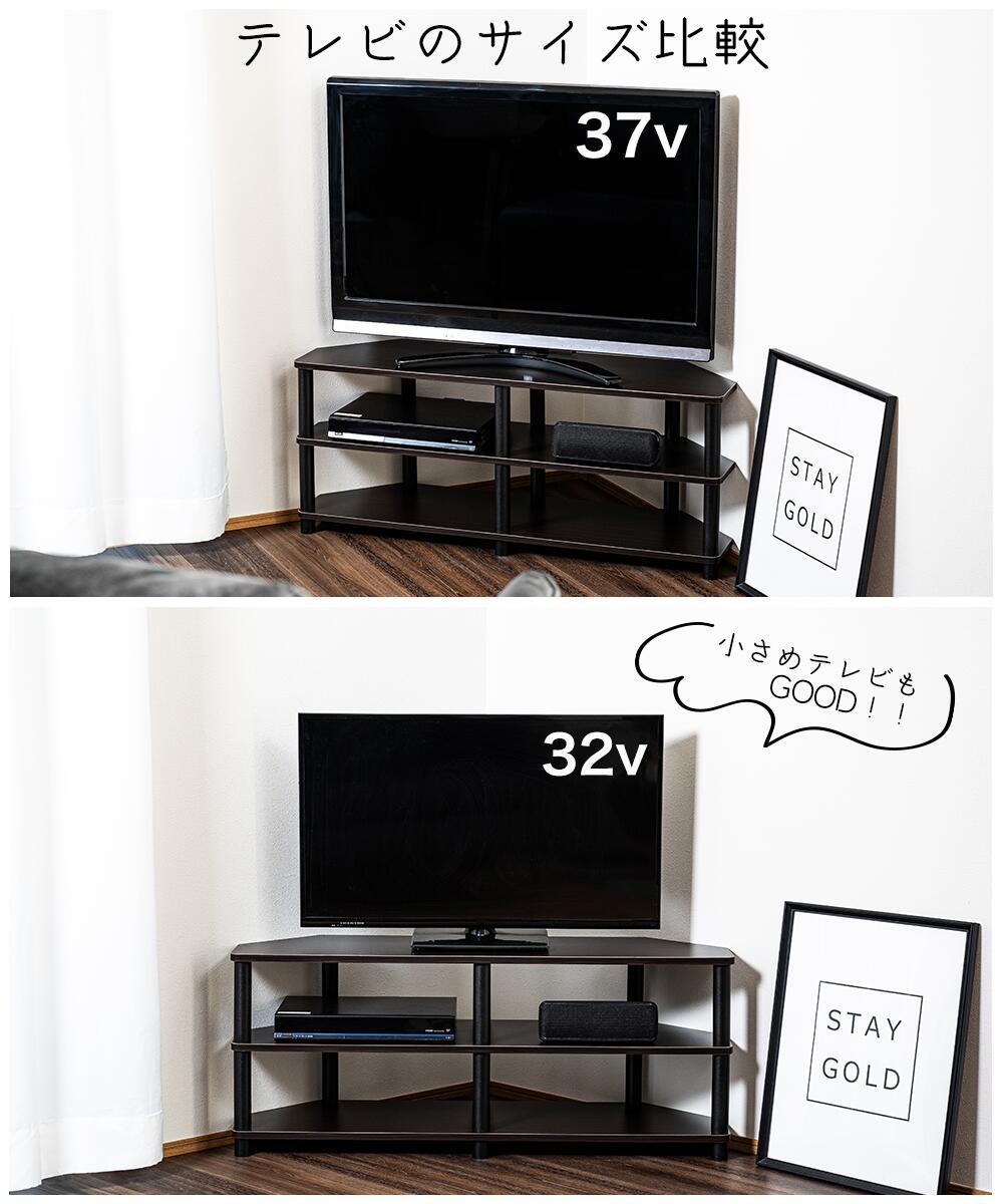 テレビ台 コーナー用 43型対応 ブラウン×黒 工具不要 AVボード ローボード TVラック +800円でキャスター付きに変更可能 TVC CB 1
