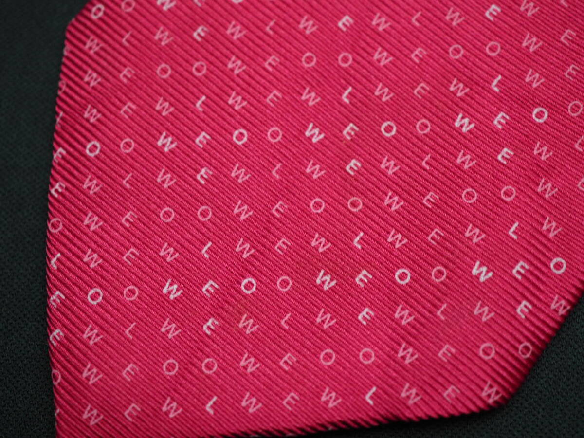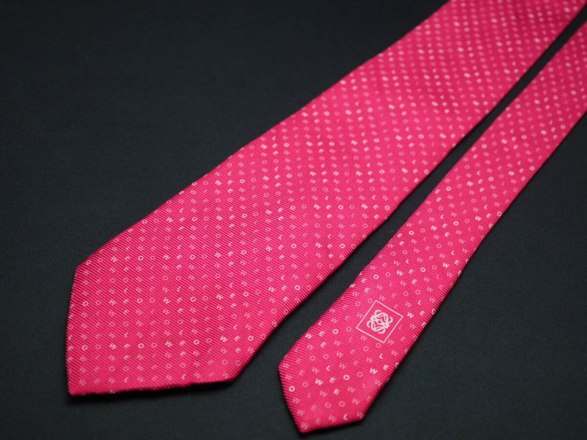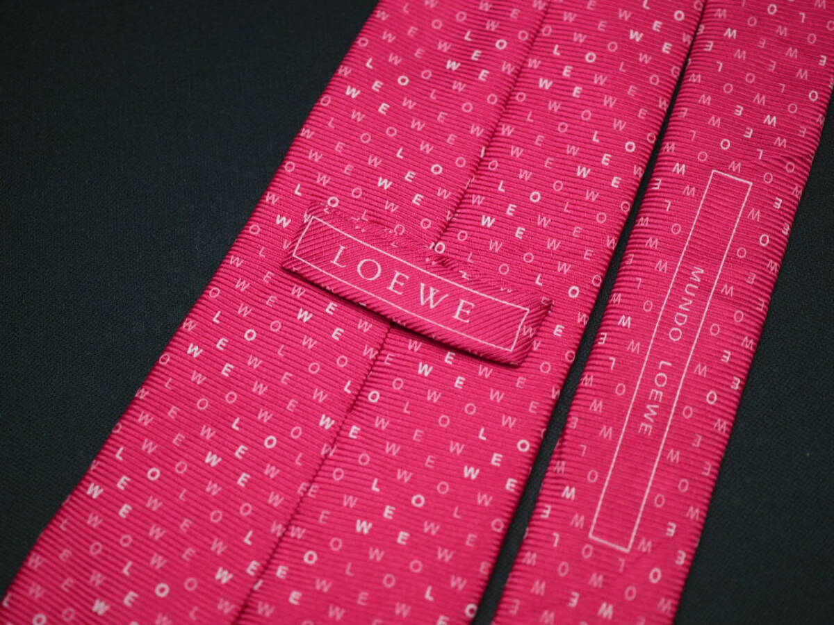 美品【LOEWE ロエベ】 G1911 ロゴ ピンク系 SILK ブランド ネクタイ 古着 良品 転売 仕入