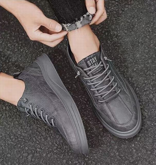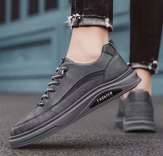 メンズ スニーカー おしゃれ PU デッキシューズ シンプル ジュニア カジュアル ファッション かっこいい 通学靴 グレー 25cm