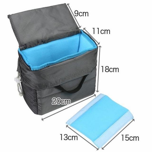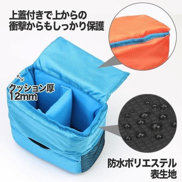 【素材】 外側:ポリエステル 内側:ベルベット 【サイズ】掲載サイズ表をご参照ください。 【約12mmの肉厚クッション】 底面、天面を含め肉厚の12ミリのクッション素材で採用大切な機材を衝撃から守ります。 ミラーレス一眼カメラとレンズ、小型ストロボや充電器などのアクセサリーを安全に持ち運べるクッションつきインナーケースです。 【小さめバッグでも無理なく入る】 横幅約20cmとコンパクトなサイズで今までもクッションケースが入らなかった場合でも入れることが出来ます 【マチ11cmの薄型設計でお持ちのバッグにすっきりフィット】 横幅20cmなためレンズ付ミラーレスと交換レンズを入れるには少しきついですが、交換レンズ2本やレンズ付ミラーレスカメラとアクセサリーなどは入ります。