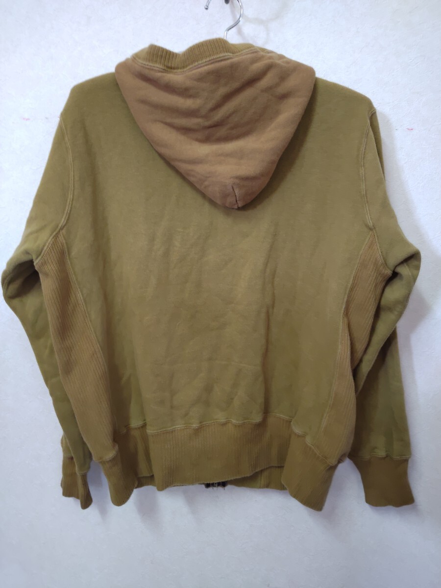 写真5の部分、点汚れあります、ユーズド感ありますので、写真にてご判断いただきノークレームにてお願いいたします。サイズは(M)で着丈(背中フードの付け根より)59cm、肩幅46cm、身幅(わきの所)56cm、袖丈59cm位です。素人採寸のため多少の誤差はお許しください。ヤマト着払い、にて発送いたします。商品の劣化を防ぐため無理のある小さく折りたたんでの梱包は致しません