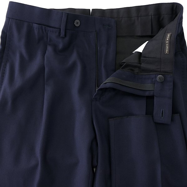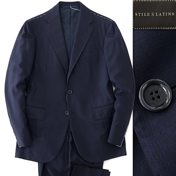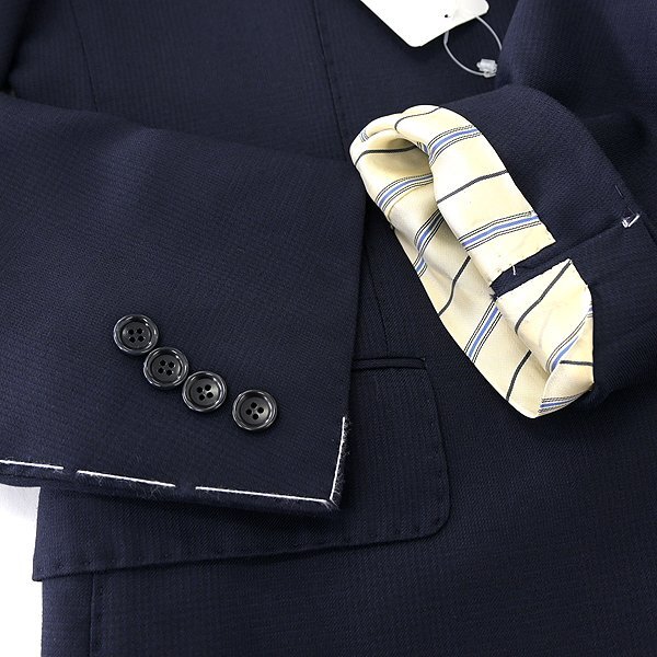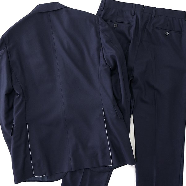 (株)エヌ・ケー・クラシイック正規品 イタリア製 定価341,000円 新品展示品 未使用 紙タグあり 展示品だったため、ジャケットの裏地にハンガー擦れがあります。 46サイズ(Mサイズ相当) ※商品に記載されたサイズ・寸法です※ 【ジャケット】 肩幅44.5cm 身幅50cm 袖丈62cm 着丈72.5cm 【スラックス】 ウエスト84cm(内回り1周) 股上27cm 股下95cm 裾幅17.5cm 腿幅28.5cm(股下10cm部分) 表地:毛100% 裏地:キュプラ100% 下衣裏地:レーヨン100% ネイビー |