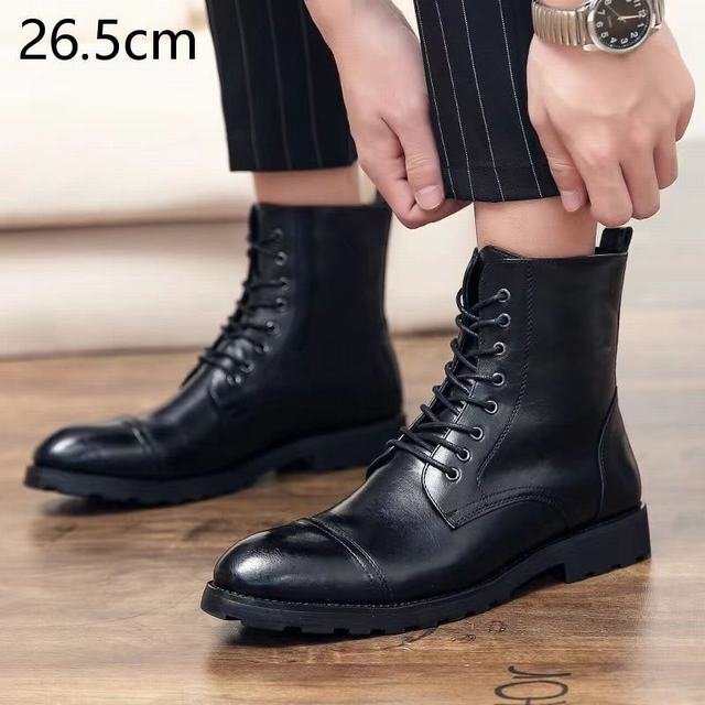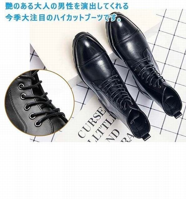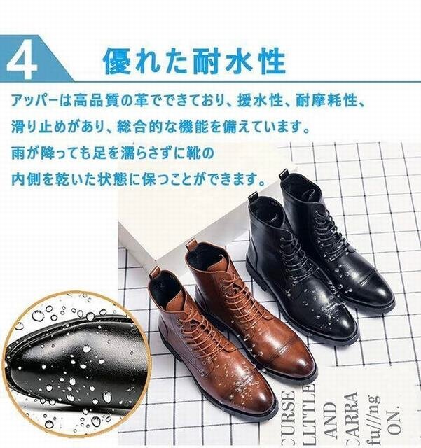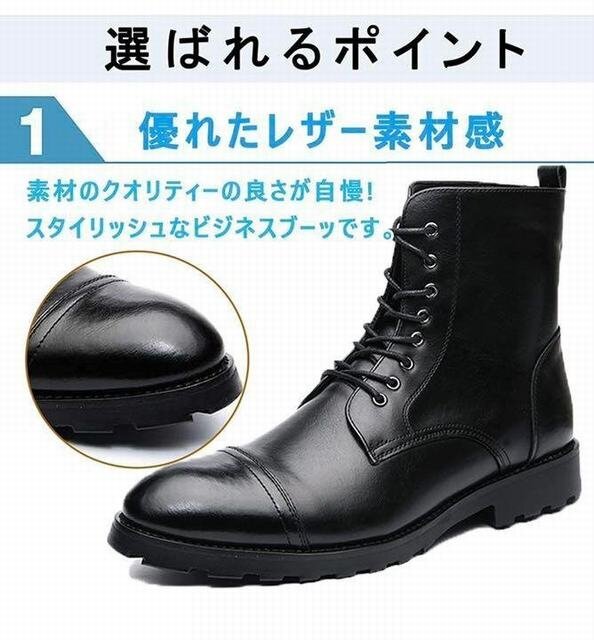 【滑り止めソール】チェルシーブーツは、クッション性の高いインソールとラバーソールが特徴で、動きやすく、滑り止めのボトムは安全です。クッション性の良いインソール、ウッドカラーのソール、エレガントで着やすいビジネスブーツで、大人の男性に欠かせない一足です。 【快適で通気性】牛革素材、ナチュラルで繊細なアッパーが柔らかく、足元をゆったりと快適に。通気性と抗菌効果に優れています。足を踏み入れたその日からスムーズに着れる魅力。万能なスタイルはスーツに合わせることができます。 【フォーマルな場では必須】 ストレートチップとは、つま先部分に横一文字のラインが入っているデザインの靴です。ストレートチップは、横一文字のラインより先の部分にしわがつきにくいという特徴があります。最もフォーマルなデザインで、冠婚葬祭でも使えるため、3足は持っておきたいデザインです。 【幅広い用途】通勤、求人、就職活動、入学式、成人式、結婚式などのフォーマル?カジュアルなエチケットに最適です。チノパンツやデニムなどのビジネスシーンやレジャーシーンで幅広く活躍!フォーマルにもカジュアルにも合わせやすいトレンディなブーツ。