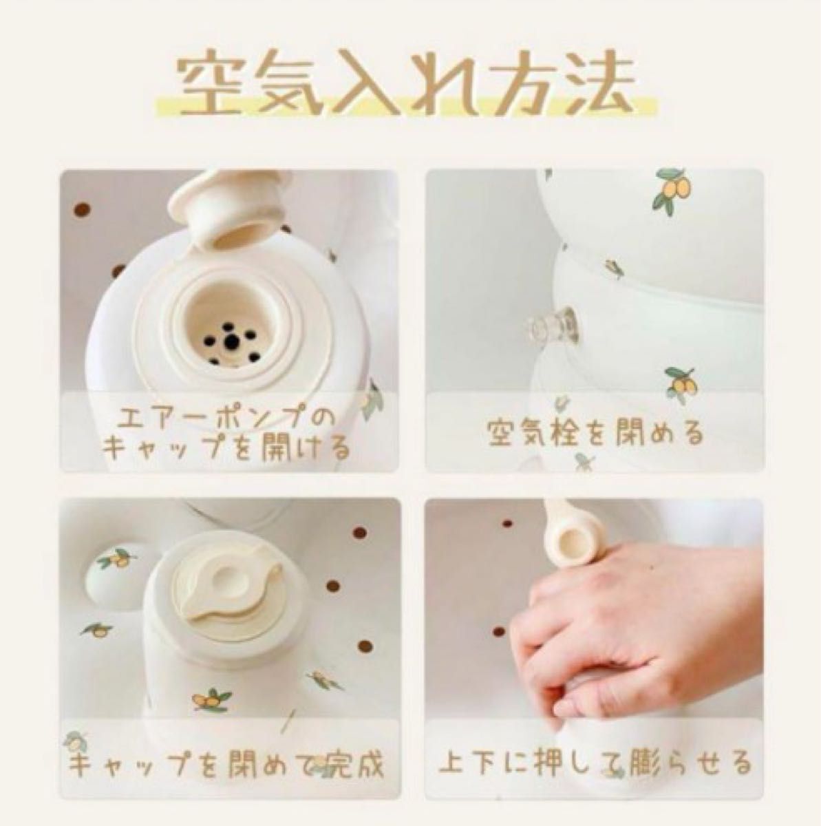 手でポンプを押すだけタイプのエアポンプ内蔵なので、すぐに使用可能♪