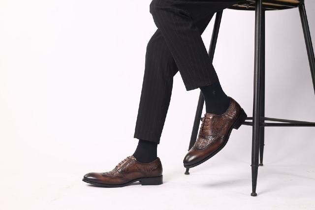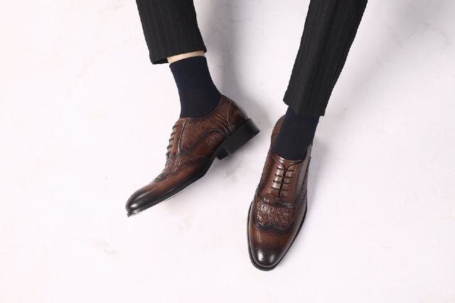 ビジネスシューズ メンズシューズ シューズ 靴 フォーマル ロングノーズ ローカット 紐靴 紳士靴 ワニ柄 ブラウン 25.5cm