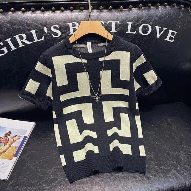 とてもおしゃれでかっこいい洗練されたデザインのニットTシャツです。 モノクロデザインなのでほとんどのパンツに合わせやすく高級感のある佇まいを演出。 夏は一枚Tシャツとして、春秋でもインナーとしても使える一枚です♪ ニット生地で伸縮性も有るシャツなのでシンプルな黒パンツ、白パンやデニムとの相性もバッチリです。 注意事項:モニター環境もしくは撮影環境により色差が発生する可能性がございます。 弾力素材なので,測り方により誤差が生じる可能性がございます。体重身長でお選びの方がお勧めです。ご了承くださいせ。